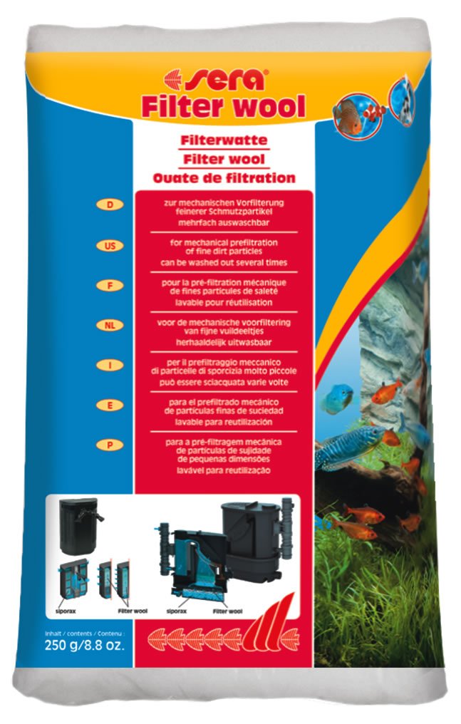 - Sera Filterwatte ergänzt andere Filterschichten sehr effektiv und hält die feinsten Schmutzpartikel in Süß- und Salzwasser zurück.