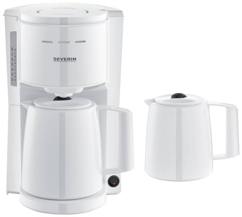 - Die Severin KA 9309 Kaffeemaschine in Weiß ist mit einer praktischen Thermoskanne ausgestattet, die den Kaffee lange warm hält