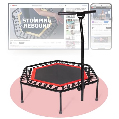 SportPlus Fitness-TrampolinØ 126cm, leise Gummiseilfederung, 5-Fach höhenverstellbarer Haltegriff, inkl. Randabdeckung, Nutzergewicht bis 130kg, Trampolin für Jumping Fitness