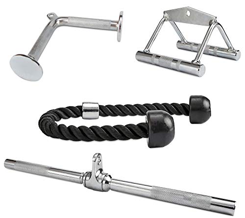 - Die BalanceFrom Unisex-Erwachsene Combo ist eine komplette Kombination aus Trizepsseil, V-Griff, V-förmiger Stange und gerader drehbarer Stange