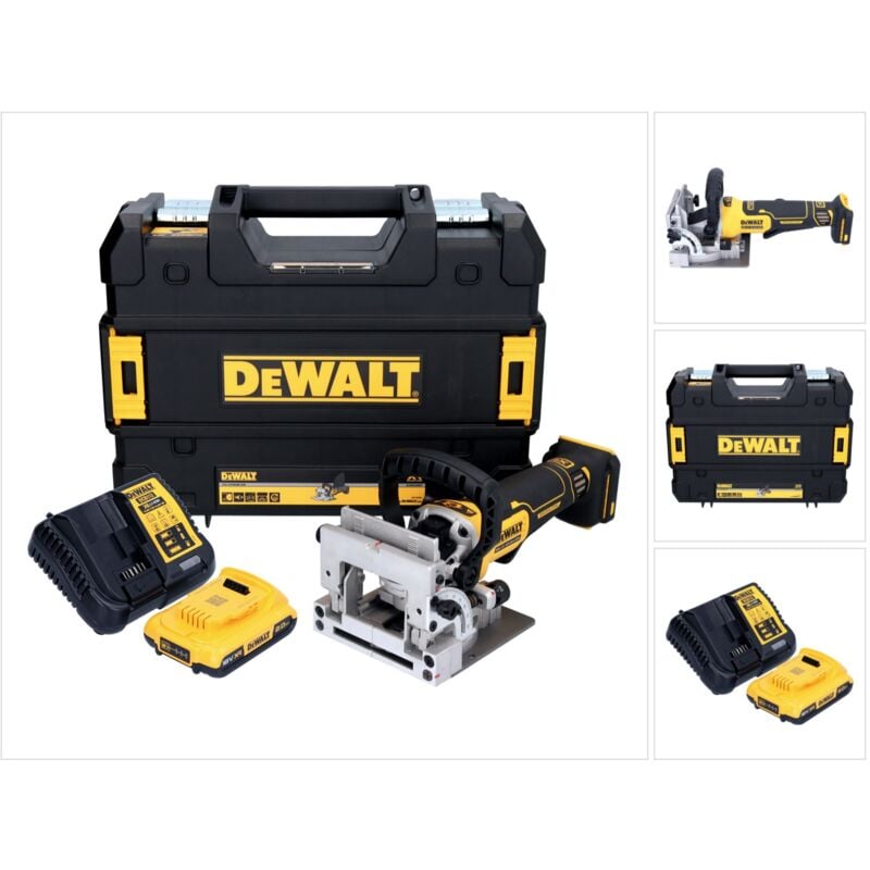 Dewalt DCW 682 D1TAkku Flachdübelfräse 18 V mit 2,0 Ah Akku und Ladegerät, Brushless Motor, präzise Zahnstangenführung