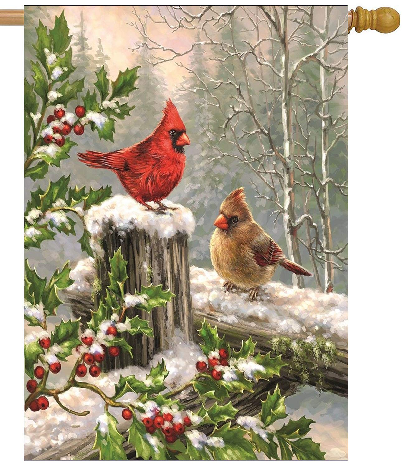 in FlaggenWamika Merry Christmas Gartenflaggen 12 x 18 doppelseitigKardinalrot Vogel Stechpalme Beeren Äste Schnee Willkommen Winter Urlaub Hof Outdoor Haus Flagge Banner Party Home Weihnachten Dekoration 28x40in