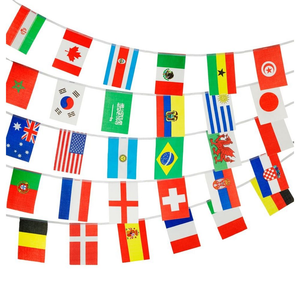 - Entdecken Sie diese farbenfrohe Flaggenkette zur Dekoration! Die bunte Wimpelkette zeigt die Flaggen von 30 verschiedenen Ländern und bildet zusammen eine fröhliche Girlande