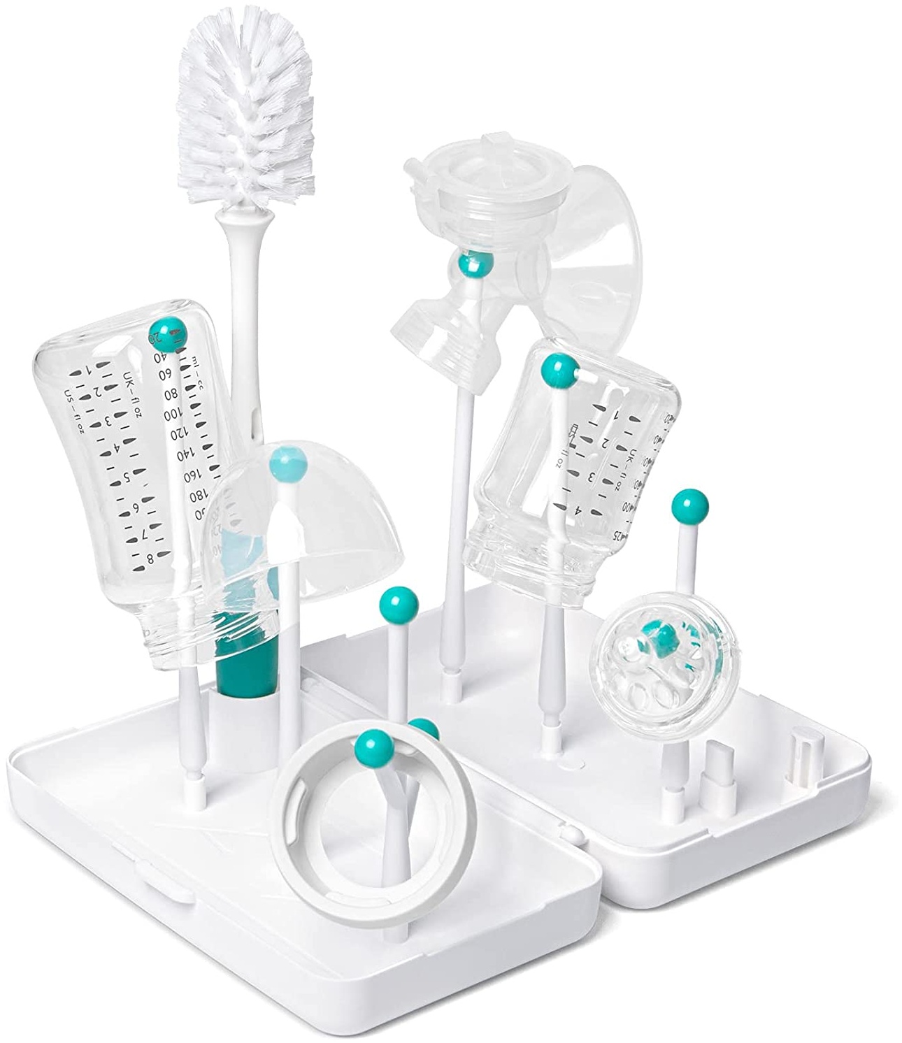 in Flaschen ZubehörTrockenständer Babyflaschen UnterwegsTrockengestell mit Bürsten, Abtropfgestell für Babyflaschen, Flaschen, GrauSaugern, BPA-frei (Blaugrün)