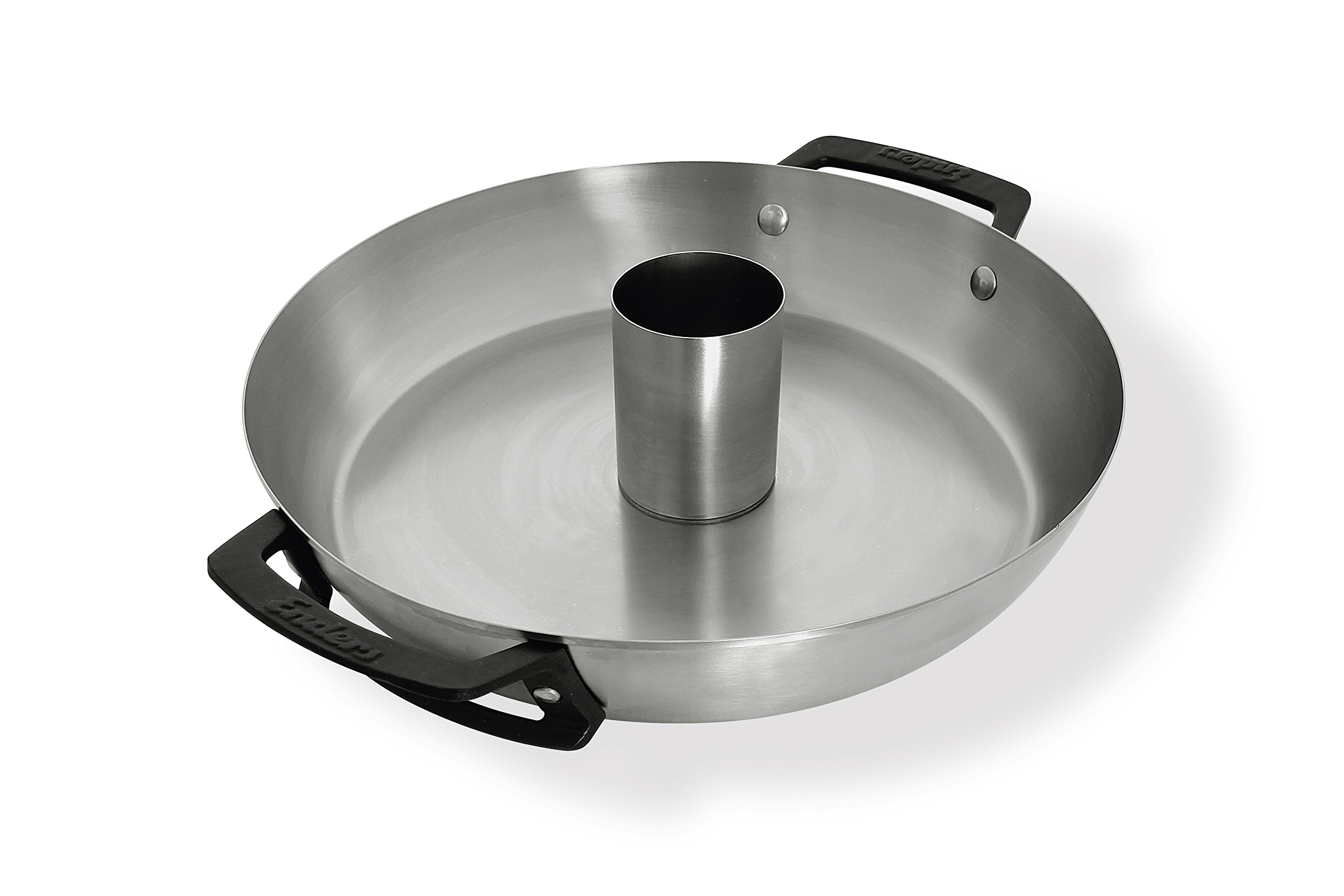 - Er besteht aus einem Edelstahl-Korpus mit robusten Griffen aus emailliertem Gusseisen.