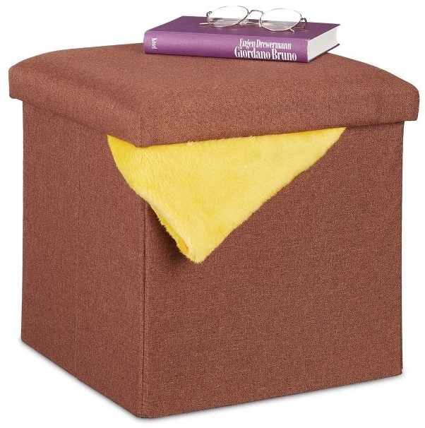 Praktischer Sitzhocker in Braun mit Stauraum, der sich durch sein schlichtes Design harmonisch in jede Einrichtung einfügt. Der faltbare Hocker bietet eine bequeme Sitzgelegenheit oder Fußablage und verfügt über Stauraum unter dem Deckel für Zeitschriften, Decken und mehr. Mit einer Belastbarkeit von ca. 80 kg und einer weichen Schaumstoffpolsterung ist er komfortabel und platzsparend verstaubar. **Highlights** - Dekorativer Sitzhocker für jede Einrichtung - Stauraum unter dem Deckel für Zeitschriften, Decken, etc. - Belastbarkeit von ca. 80 kg - Weich gepolstert für angenehmen Sitzkomfort - Platzsparend zusammenfaltbar **Produkteigenschaften** - Maße (H x B x T): 37 x 37,5 x 37,5 cm - Maße gefaltet (H x B x T): 2 x 35 x 34 cm - Innenmaße (H x B x T): 34 x 34 x 34 cm - Fassungsvermögen: ca. 40 L - Gewicht: ca. 2,1 kg - Material: MDF, Polyester, Schaumstoff - Faltbar und platzsparend verstaubar **Lieferumfang** - 1x Hocker in Farbe nach Wahl - Dekoartikel sind nicht im Lieferumfang enthalten