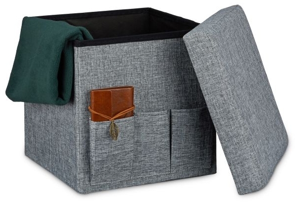 **Faltbarer Sitzhocker aus Leinen mit Stauraum** **Highlights** - Trendiges Design aus kernigem Leinen - Viel Stauraum mit ca. 40 L Fassungsvermögen - 3 praktische Außentaschen für kleine Gegenstände - Weiches Polster für angenehmes Sitzgefühl - Platzsparend zusammenfaltbar **Produkteigenschaften** - Maße aufgebaut: 38 x 38 x 38 cm - Maße zusammengefaltet: 6 x 38 x 38 cm - Farbe: Grau - Material: Leinen - Stabile Konstruktion - Belastbar und widerstandsfähig