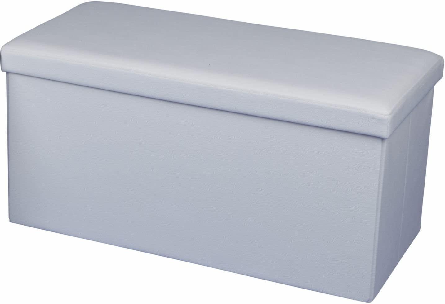 in Flur: TruhenECHTWERK Sitzbank Faltbare Polsterbank aus hochwertigem KunstlederSitzhocker mit Aufbewahrungsfunktion, Für Wohnzimmer/Schlafzimmer, Bis 300 kg belastbar, Weiß, 76 x 38 x 38 cm