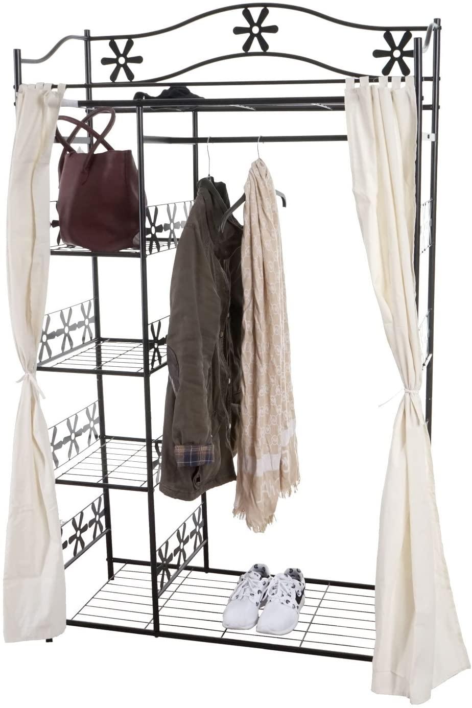 in FlurMetall-Garderobe GenfGarderobenständer Kleiderschrank Metallregal 172x100x43cm ~ mit Vorhang