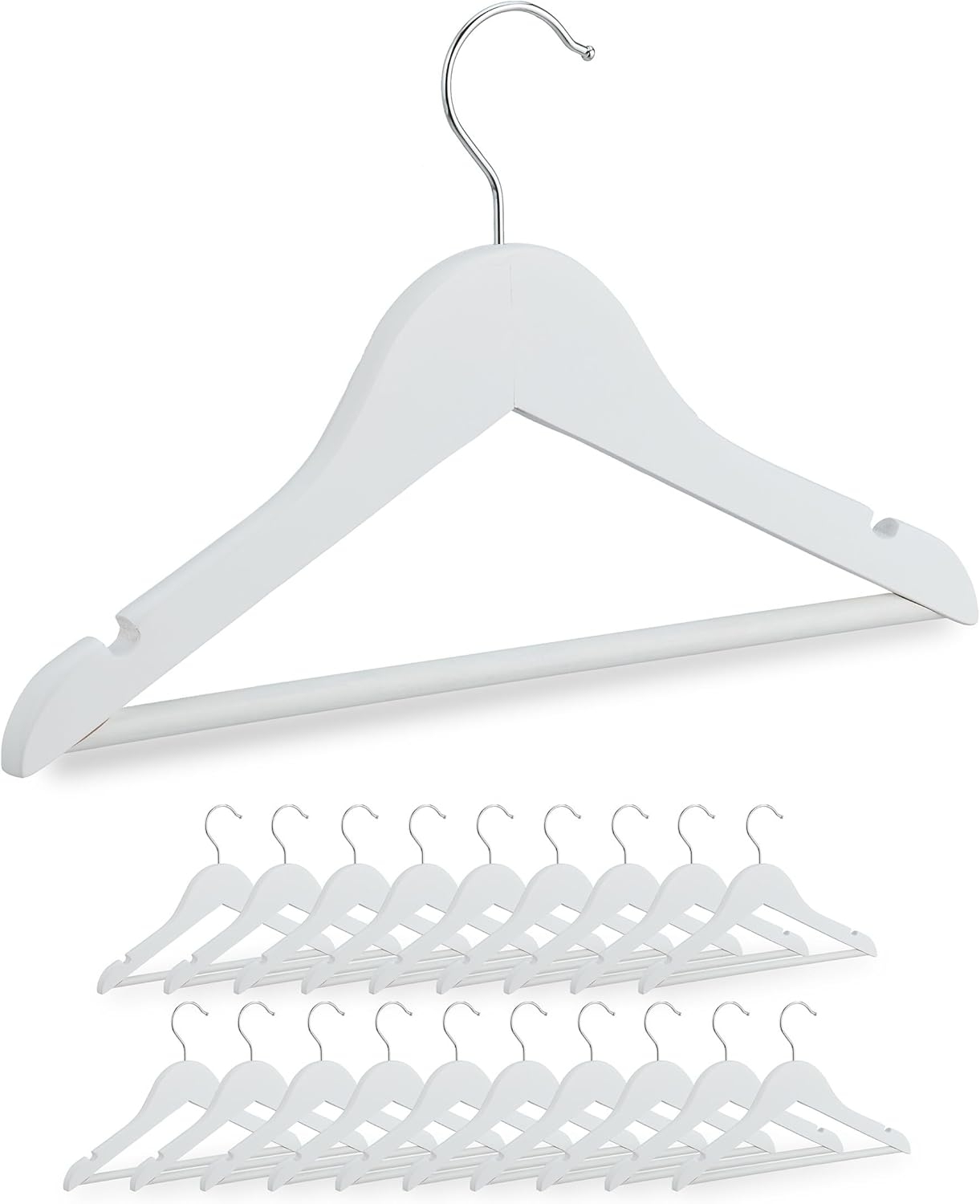 | Name | Relaxdays Kinderkleiderbügel, 20er Set, Holz Kleiderbügel, Baby und Kinder, drehbarer Haken, mit Steg & Kerben, weiß |