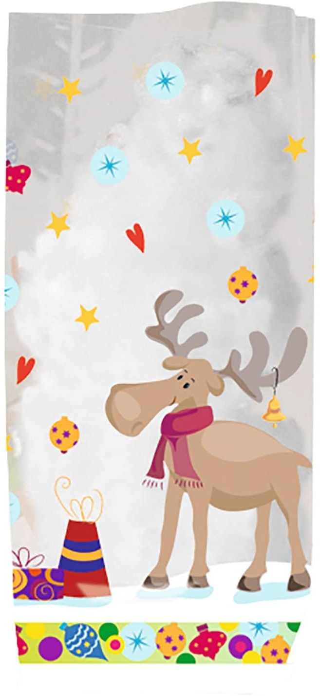 Geschenk-Bodenbeutel, 'Elch', 10 Stück - in 2 Größen lieferbar, - Bodenbeutel besteht aus lebensmittelechter Folie, - ist transparent, - bedruckt mit Elchmotiv, - eignet sich für Kekse, Plätzchen, Bonbons uvm.