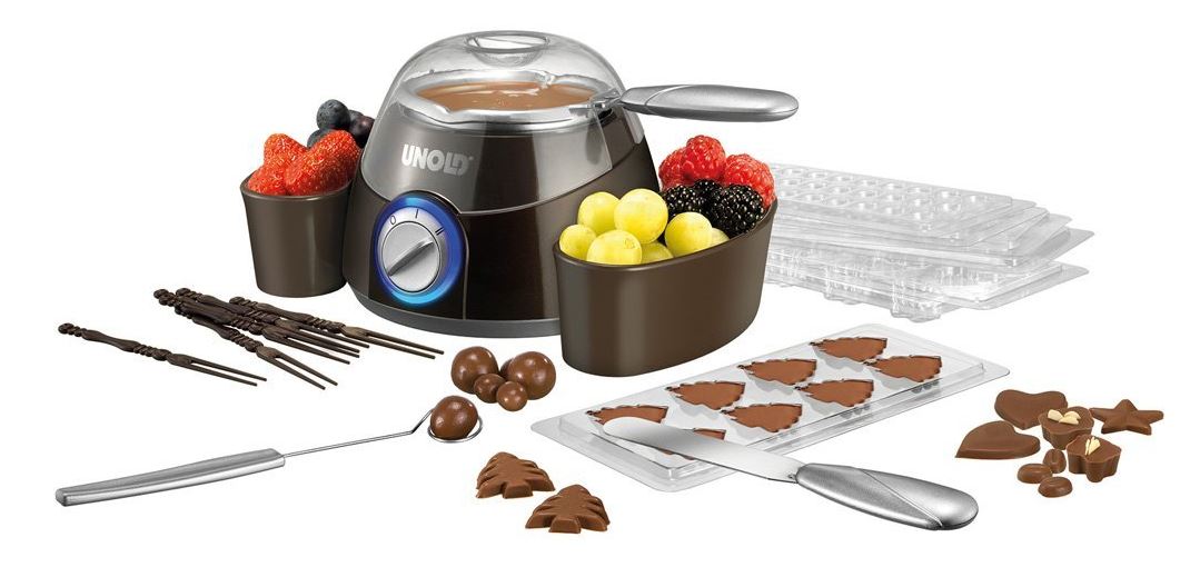 UNOLD CHOCOLATIERSchmelztopf, Gießformen, Zubehör, 2 Heizstufen, Kuvertüre, 48667