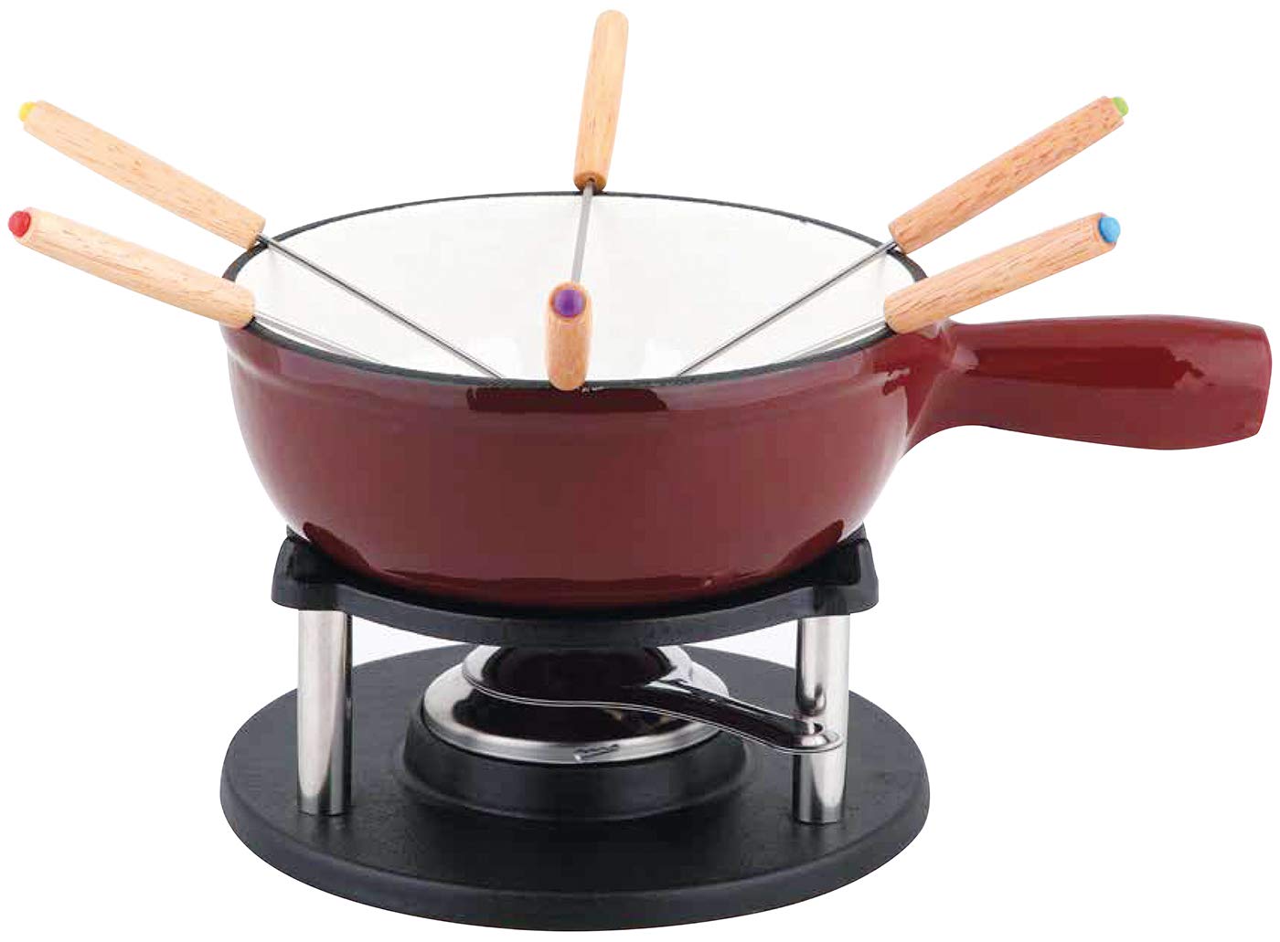 - Die 6 Fonduegabeln verfügen über Holzgriffe und sind mit farbigen Aufsätzen markiert, um die Häppchen der Gäste zu kennzeichnen.