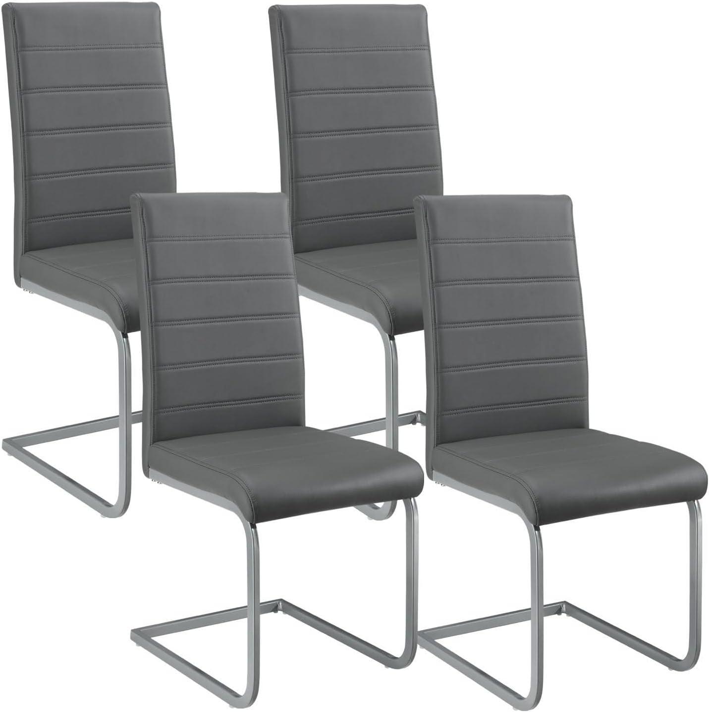 | Name | Juskys Freischwinger Schwingstuhl Vegas 4er Set – Esszimmerstuhl mit Metall-Gestell & Bezug aus Kunstleder – Moderner Küchenstuhl in Grau |