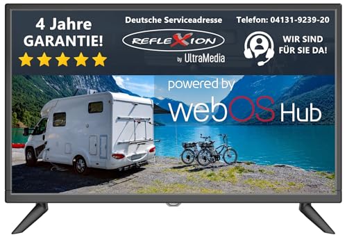 REFLEXION LED24IBT Smart LED Fernseher60 cm / 24 Zoll, Wohnmobil/Camping/Caravan TV, Full HD, Triple Tuner, DVB-T2HD, DVB-S2, DVB-C, Bluetooth, WLAN, LG webOSHub, Schwarz