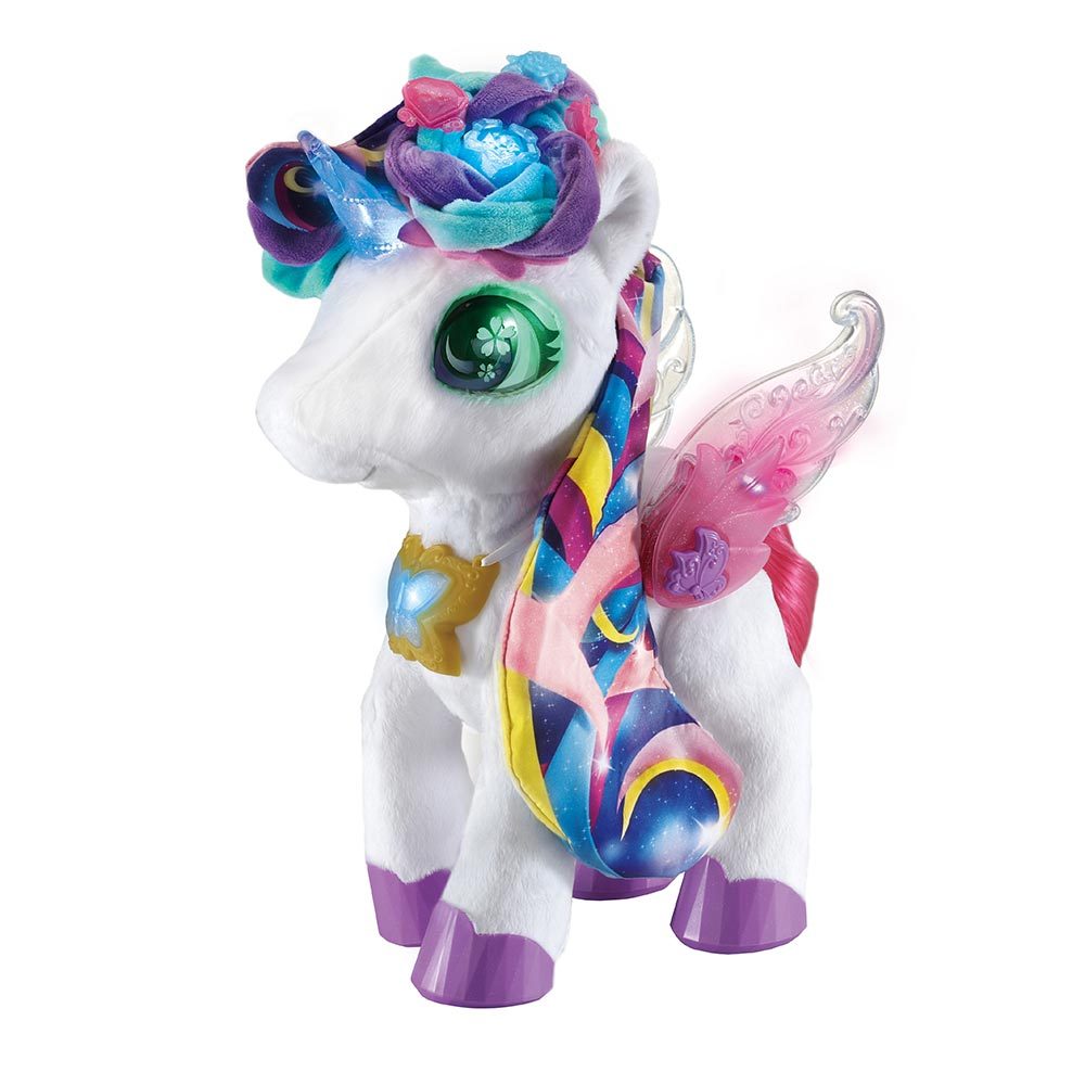 Vtech 80-547104 'Stylamein Blumenzauber-Einhorn' Funktionsplüsch, ab 4 Jahren, 7 Spielmodi, schlägt mit den Flügeln