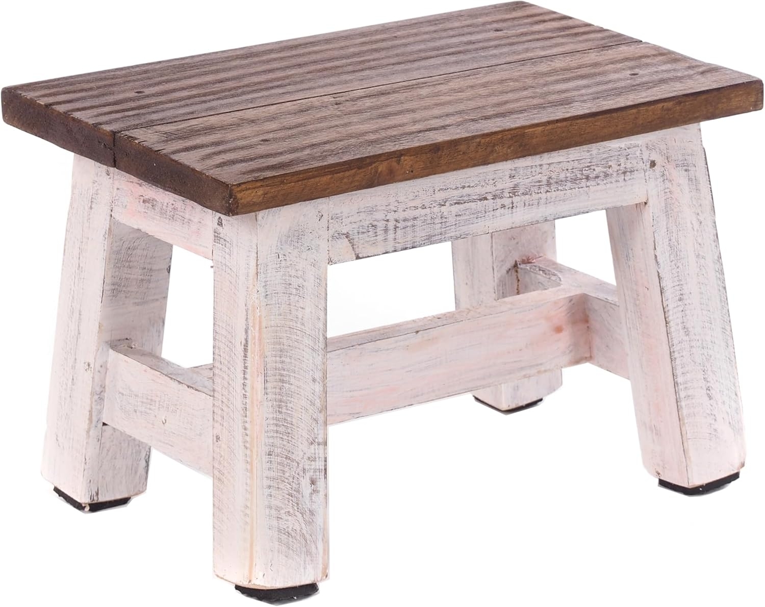 DESIGN DELIGHTS Rustikaler FUSSHOCKER Monte | 21 x 30 x 20 cm (HxBxT), Mahagoni Recyclinholz | Holzhocker | Farbe: 05 weiß-Natur