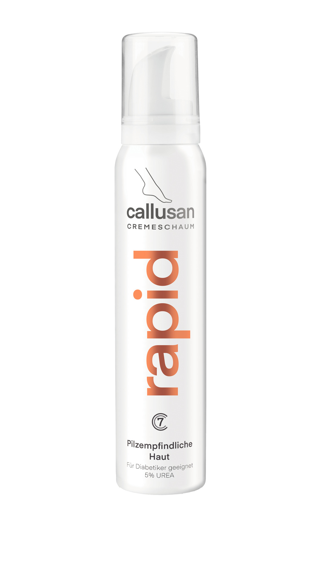 - Callusan Cremeschaum Rapid enthält 5% Urea, was zur intensiven Feuchtigkeitspflege der Haut beiträgt