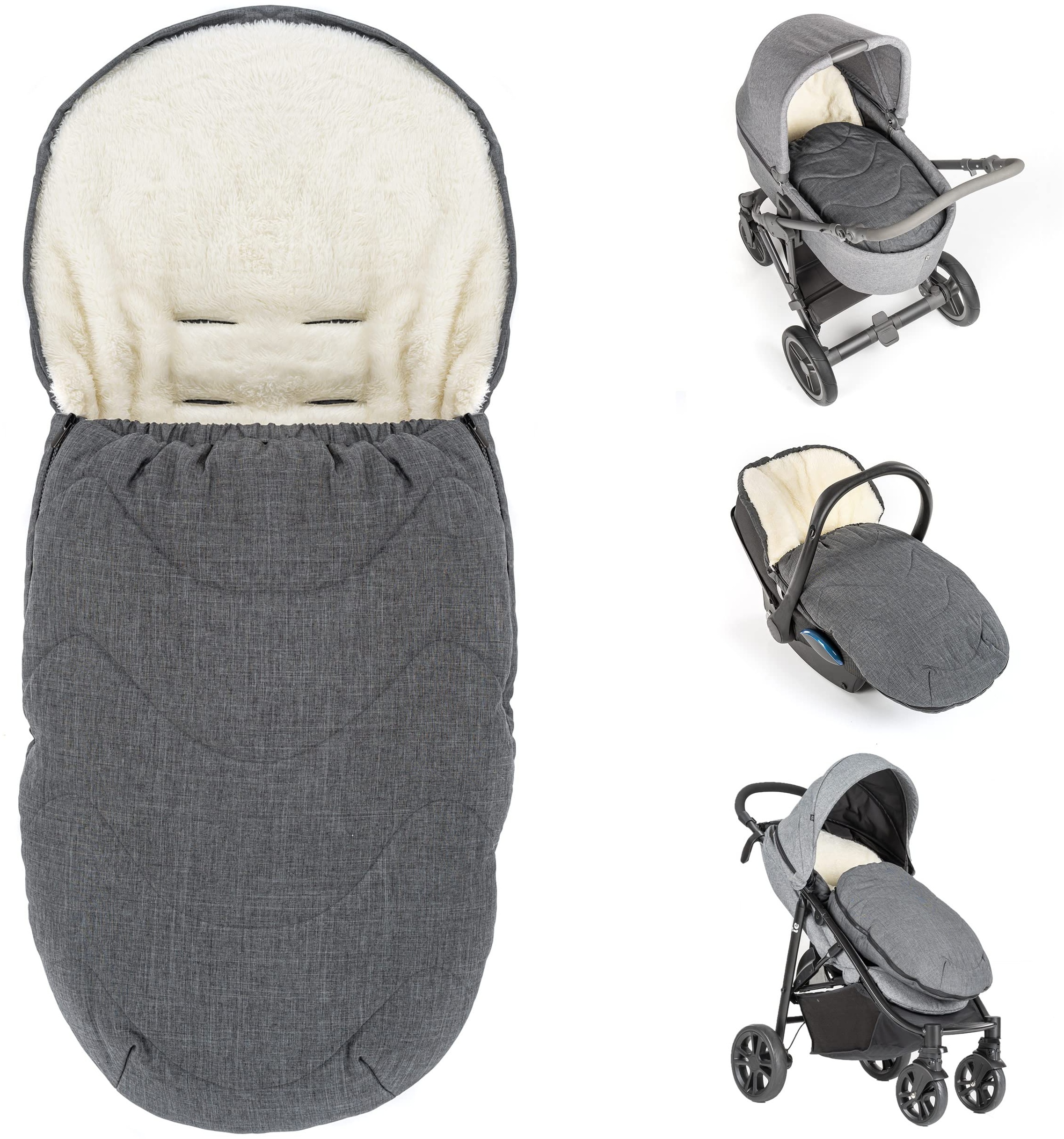 - Mit einer Länge von 93 cm passt der Fußsack in fast alle gängigen Modelle und ist einfach zu handhaben dank des Zwei-Wege-Zippers und der Maschinenwäsche bei 40°C.