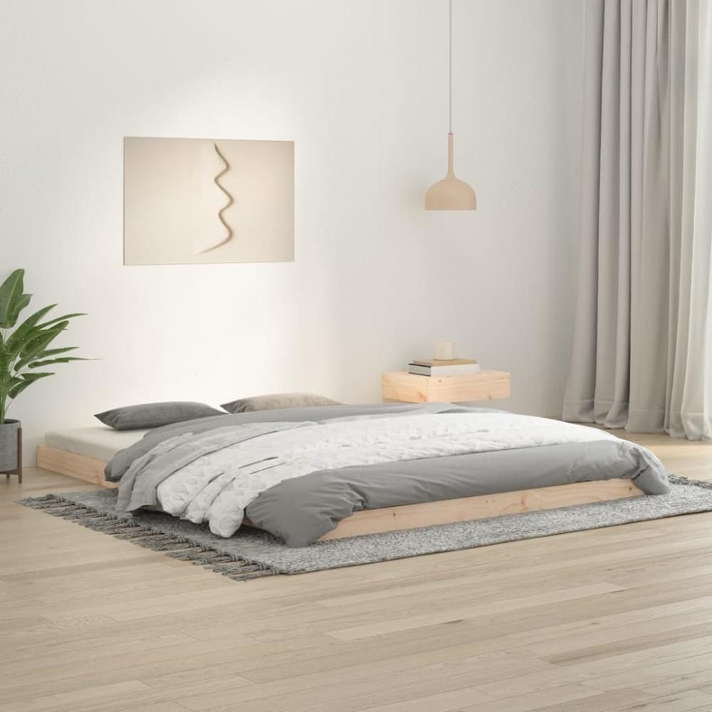 Das vidaXL Massivholzbett 150x200 cm Kiefer 5FT King Size verleiht Ihrem Schlafzimmer eine moderne Note. Das Bett ist aus massivem Kiefernholz gefertigt, das eine gerade Maserung und eine rustikale Optik aufweist. Der Holzrahmen sorgt für Robustheit und Stabilität. Die robusten Sperrholzlatten gewährleisten eine gute Gewichtsverteilung und halten die Matratze an Ort und Stelle. Bitte beachten Sie, dass die Lieferung nur den Bettrahmen umfasst und die Matratze nicht enthalten ist. Eine Montageanleitung ist im Lieferumfang enthalten. **Highlights** - Modernes Design für jedes Schlafzimmer - Aus massivem Kiefernholz für eine natürliche Optik - Robuster Holzrahmen für Stabilität - Sperrholzlatten für eine gute Gewichtsverteilung - Einfache Montage mit Montageanleitung **Produkteigenschaften** - Abmessungen: 150x200 cm (5FT King Size) - Material: Massives Kiefernholz - Farbe: Naturholz - Stabile Konstruktion für eine lange Lebensdauer **Lieferumfang** - 1x Bettrahmen (Matratze nicht enthalten) - Montageanleitung