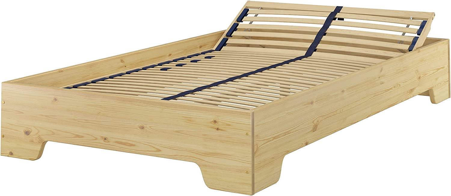 **Sehr stabiles Funktionsbett, ideal als Gästebett für kräftige Gäste** **Ein modernes Bett mit praktischem Nutzen für Pensionen und Unterbringung von Erntehelfern** **Naturprodukt Holz....logisch!** **Beschreibung:** Das komfortable Massivholzbett ist aus europäischer Kiefer gefertigt. Das Holz beziehen wir aus schonend bewirtschafteten Wäldern ohne Einsatz von Fremdstoffen. Das breite Einzelbett ist solide verarbeitet, die Oberfläche fein geschliffen und klar lackiert. Mit Mittelleiste und Stütze, Schrauben und Beschlagsatz anbei. Leichte und schnelle Montage. **Maße:** Liegefläche: 120x200 cm Holzstärke ca. 2,5 cm Einlegetiefe: ca. 12 cm Höhe Kopfteil / Fußteil: ca. 28,5 cm Auflageleiste mit ca. 2,5 cm Außenmaße ca. 125x205 cm **Beschreibung Matratze je nach gewählter Ausstattungsvariante:** Komfortschaum mit gutem Liegekomfort Rollmatratze RG 26 ca. 13 cm dick; Kernhöhe ca. 12 cm Härtegrad H2 = mittel Personen bis 100 kg schlafen auf dieser Matratze komfortabel. Die hohe Punktelastizität und die temperatur- und feuchtigkeitsregulierenden Eigenschaften des Komfortschaumes garantieren einen erholsamen Schlaf. Der Bezug ist mit atmungsaktiver Faser versteppt. Bitte die Matratze vor dem ersten Gebrauch 24 Stunden ausgerollt liegen lassen. **Beschreibung Federholzrahmen (optional):** Hochwertiger Lattenrost mit individuell im Härtegrad einstellbarer Beckenzone zur Entlastung des Lendenbereichs. 5-Zonen-Komfort für eine optimale Anpassung. Material des Federholzrahmens ist nordisches Laub-Schichtholz Größe: 120x200 cm Federleisten in Duo-Kappen gelagert (Farbe kann abweichen) Leistenbreite ca. 3,5 cm Abstand zwischen Federleisten ca. 4 cm Mittelzonenverstellung Für alle Matratzentypen geeignet Rahmenhöhe ca. 7,5 cm Empfohlen für Körpergewicht bis 100 kg **Beschreibung Rollrost (optional):** Einfacher Nadelholz-Rollrost am Gurtband mit niedrigem Aufbau