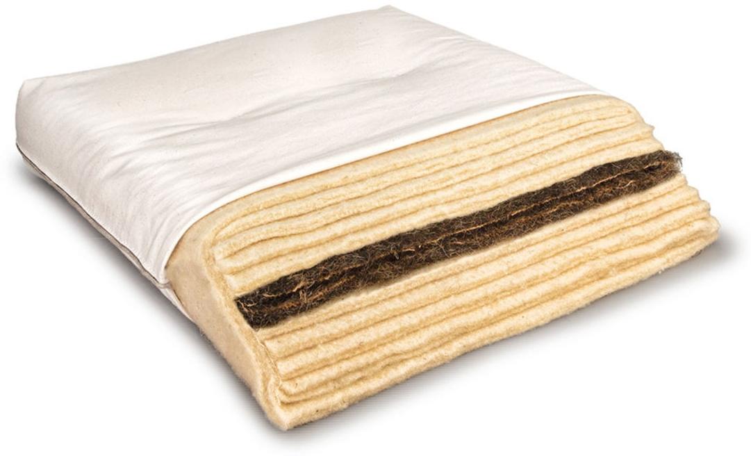 | Matratzenkern | 9 Lagen 100% Schafschurwolle kbT GOTS, 500g/m², 2 Lagen 100% Rosshaar, auf Jute, 1000g/m² |