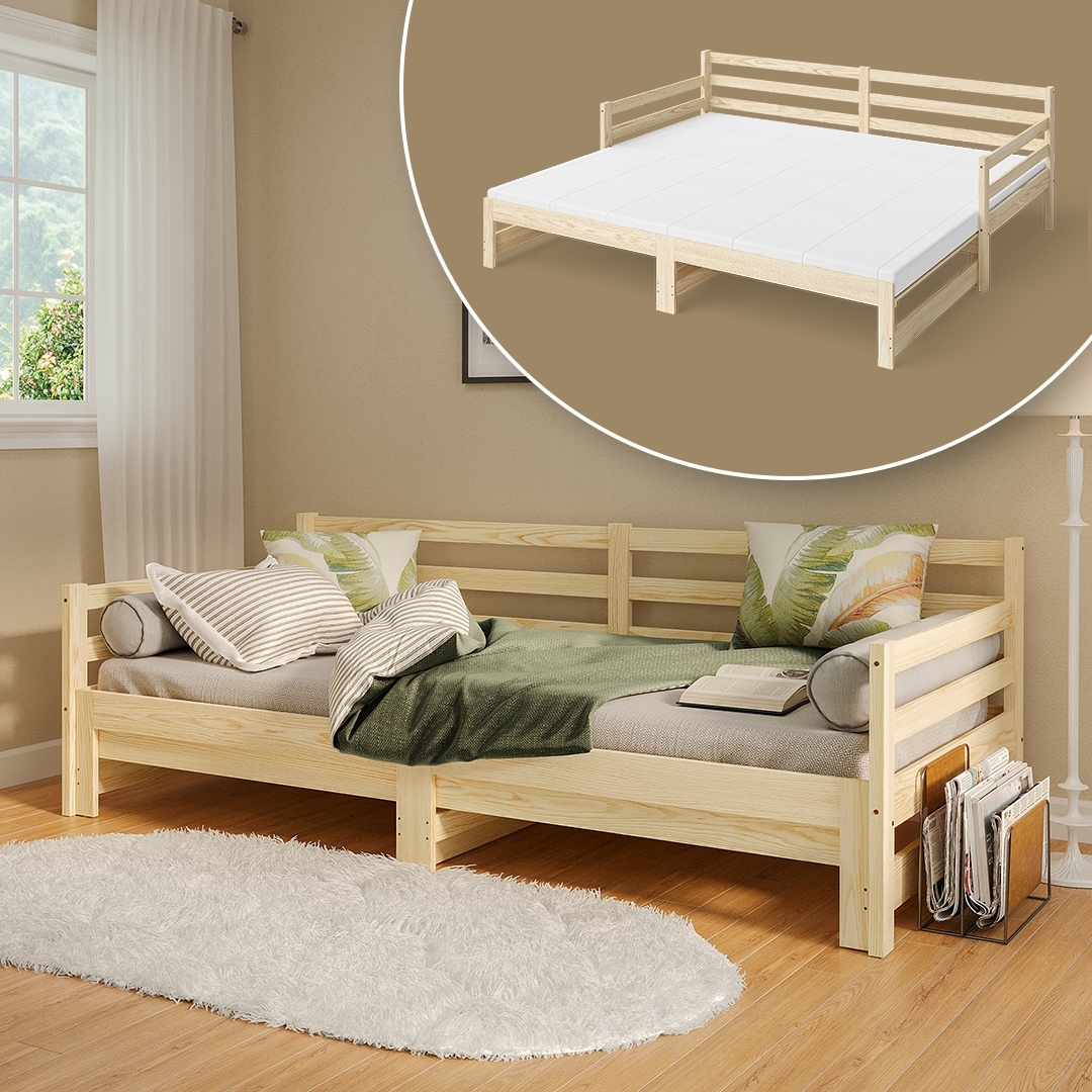 Bellamio 'Ayr' Tagesbett inkl. Lattenrost90x200/180x200 cm, Massivholz Kiefer, natur, mit ausziehbarem Gästebett