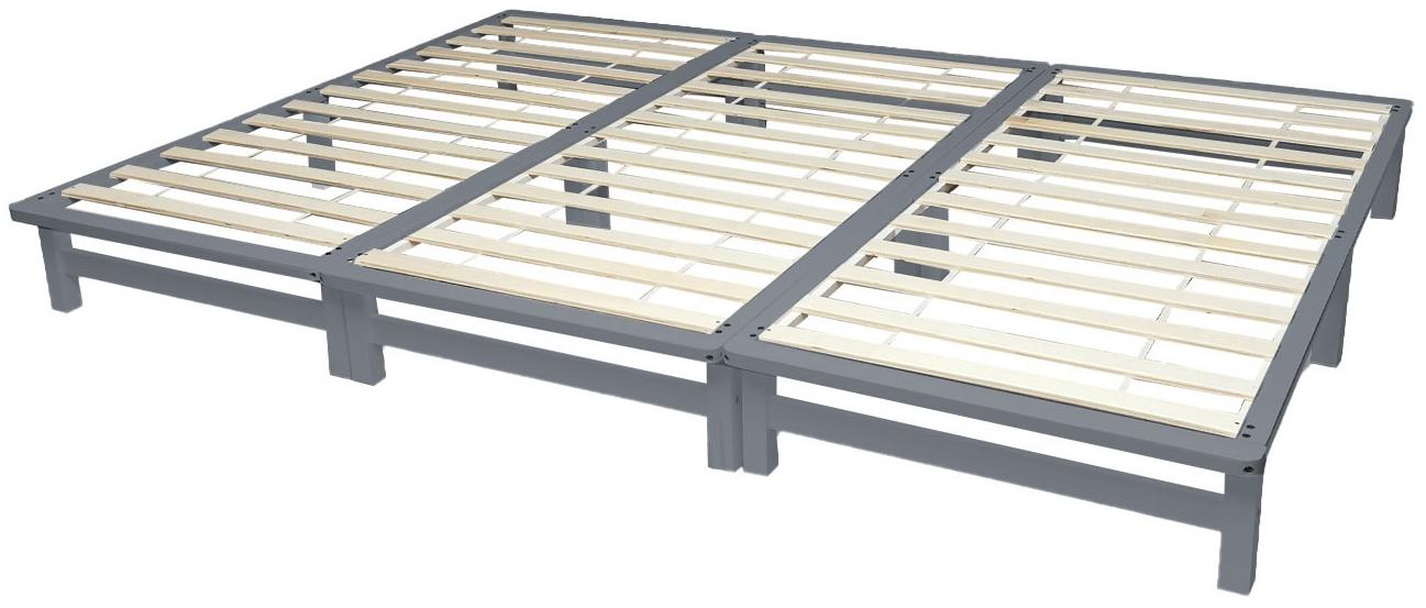 **Traumhaft schönes geradliniges Design für Ihr Schlafzimmer** Sorgen Sie für mehr Platz zum Kuscheln und ruhigere Nächte durch unser Familienbett. Co-Sleeping ist der große Trend im Schlafbereich, für den sich selbst die WHO seit einigen Jahren ausspricht. Sie sorgen sowohl für eine ganz besondere Nähe, Sicherheit & Geborgenheit der Kinder, als auch eine verbesserte Schlafqualität der gesamten Familie. Gerade für stillende Mütter bietet die gemeinsame Liegewiese eine komfortable und stressfreie Lösung für das nächtliche Anlegen. Unser massives Familienbett begeistert vor allem durch seine natürliche Schönheit, die moderne Ausführung und die stabile Verarbeitung. Das Holzbett mit einer Liegefläche von 270x200 cm bietet ausreichend Platz zum gemeinsamen Schlafen & Kuscheln für eine 4-köpfige Familie. Das Bett setzt sich aus 3 einzelnen Palettenbetten von jeweils 90x200 cm zusammen und ist dadurch flexibel erweiterbar und rückbaubar. So lässt es sich beispielsweise schnell & unkompliziert zu einem Ehebett und einem Futonbett umbauen. Ist Ihr Kind aus dem Familiennest herausgewachsen & zieht in das eigene Zimmer, kann es das Bett einfach mitnehmen. Das Massivholzbett lässt sich aufgrund seines Designs perfekt in jeden Schlafraum integrieren. Passend zum Bettgestell gibt es Rolllattenroste dazu. Ihre individuellen Matratzen können im Anschluss einfach auf das Bett gelegt werden. Lassen Sie unser Familienbett zu einem Ort werden an dem Ihre Familie gemeinsam kuscheln, schlafen und toben kann und erleben Sie Momente mit Ihren Kindern, die Ihnen sonst für immer verborgen geblieben wären. Viel Platz für die ganze Familie in Ihrem Schlafzimmer Das Holzbett mit einer Liegefläche von 270x200 cm bietet ausreichend Platz zum gemeinsamen Schlafen & Kuscheln für eine 4-köpfige Familie. Das Bett setzt sich aus 3 einzelnen Palettenbetten von jeweils 90x200 cm zusammen und ist dadurch flexibel erweiterbar und rückbaubar. So lässt es sich beispielsweise schnell & unkompliziert zu einem Ehebett und einem Futonbett umbauen. #### Abmessungen - Liegefläche vom Bett (B x T): 270x200 cm - Bett Stellmaß (B x T): 270x200 cm - Oberkante Bettseite: 28 cm - Stauhöhe unter dem Bett: 25 cm - Einlegetiefe Lattenrost: 2 cm - Materialstärke: 30 mm - Pfostenstärke: 4,8 cm #### Stabile Verarbeitung - durch Verbindungsstücke sicher miteinander verbunden - stabile praktische Konstruktion durch massive Bettfüße und Bettrahmen - äußerst belastbar und robust - abgerundete Kanten - Palettenbett inklusive Rolllattenrost - einfach zu montieren - ein eigenes Lattenrost kann ebenfalls verwendet werden #### Lattenrost - Bettgestell Holz Kiefer massiv - grau lackiert - Bettgestell mit Lattenrost, Aufbauanleitung - Dekoration und Matratze sind nicht im Lieferumfang enthalten - Lieferung mit 3 Paketen erfolgt per Paketdienst - zerlegt verpackt, Montage erforderlich