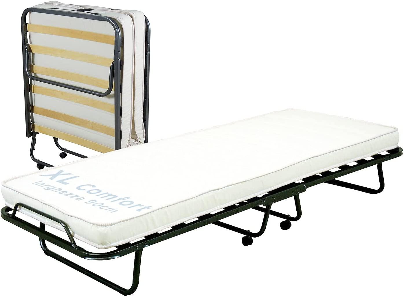 | Name | Cortassa - Klappbett XL Comfort mit Matratze aus Polyurethan, Höhe 10 cm, Einzel-Lattenrost aus Holz, 90x200, platzsparendes Bett mit Rollen |