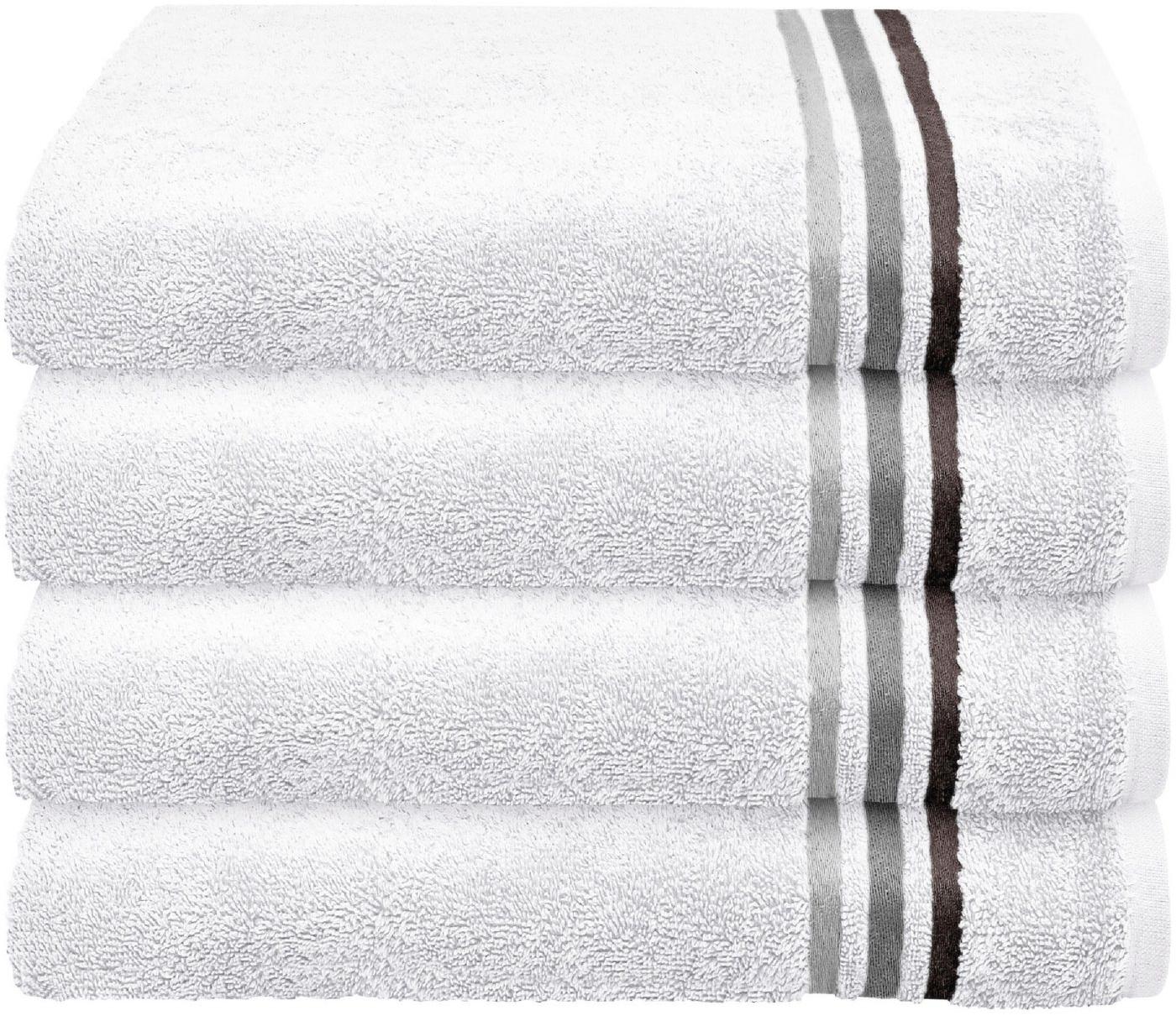 **Kuschelweiche Schiesser Frottier Handtücher Skyline Color im 4er Set aus Baumwolle, Made IN Green, Farbe: Weiß, Größe: 50x100 cm.** **Highlights** - Superweiche Baumwolle für ein angenehmes Hautgefühl - Hohe Saugfähigkeit und kurze Trockenzeit - Umwelt- und sozialverträgliche Produktion - Frei von synthetisch-chemischen Mitteln - Teil der Schiesser Skyline Color Kollektion **Produkteigenschaften** - Maße: 50x100 cm - Material: 100% Baumwolle - Zertifiziert mit Made IN Green - Streifenbordüre für einen eleganten Look - Erhältlich in verschiedenen Farben und als Duschtuch, Gästehandtuch und Waschhandschuh