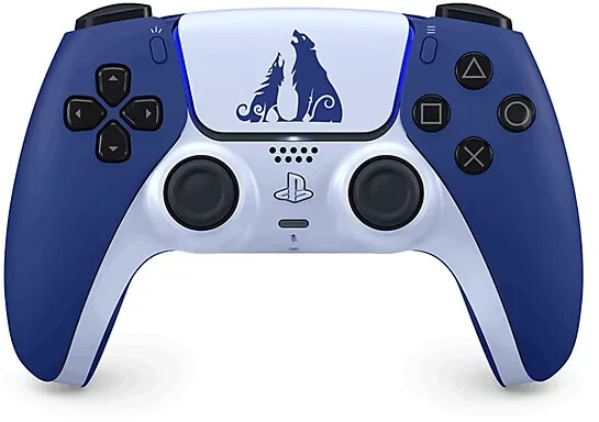 - Der DualSense™ Wireless-Controller in limitierter Auflage ist inspiriert von der nordischen Welt von Midgard und verfügt über ein einzigartiges zweifarbiges Design in kühlem Blau auf eisigem Weiß, verziert mit Bären- und Wolfsinsignien.