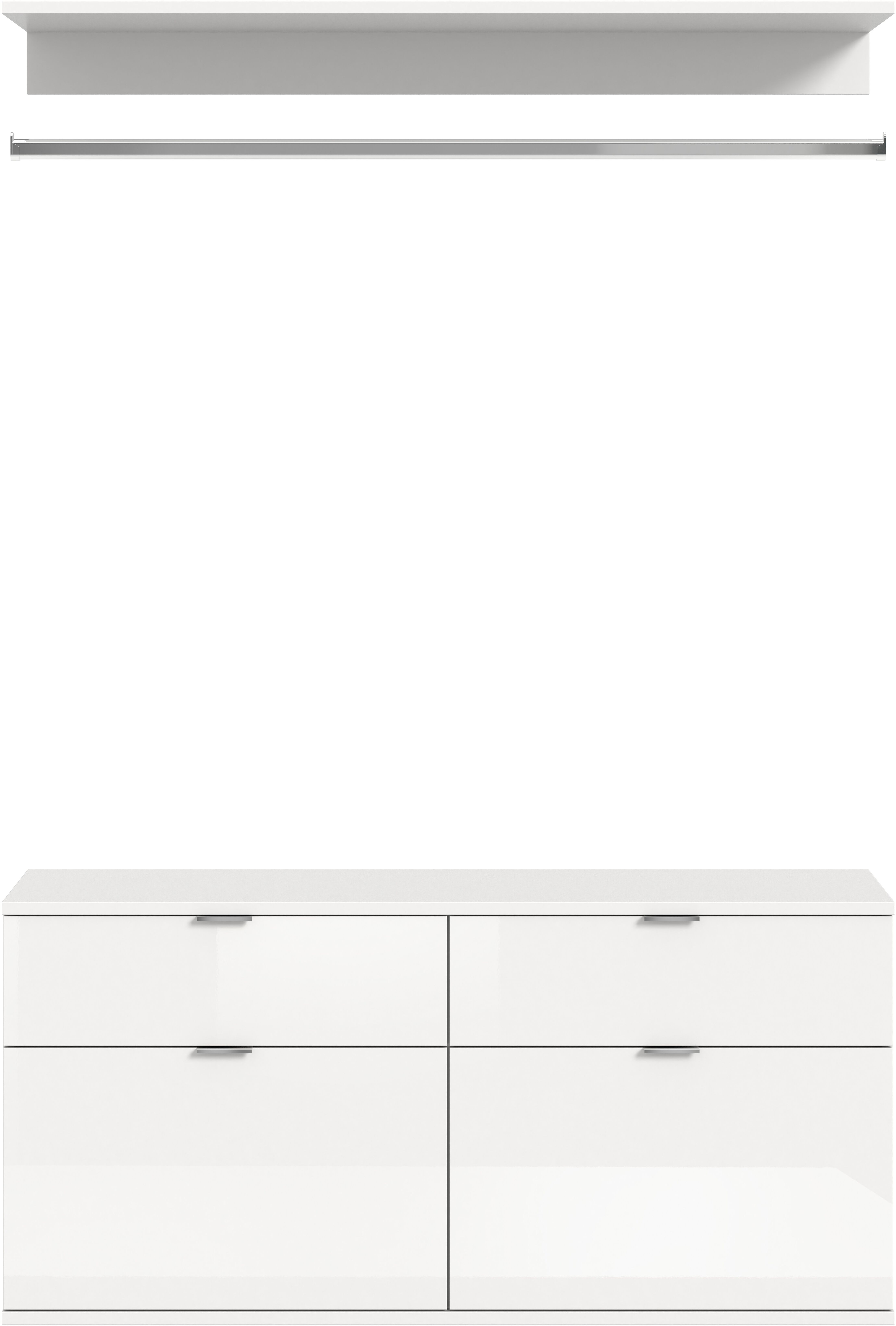 Elegante, moderne Kommode mit Garderobenstange aus Spanplatte ------------------------------------------------------------- Verwandeln Sie Ihren Flur, Ihre Diele, Ihren Hauswirtschaftsraum, Ihr Büro und Ihr Schlafzimmer mit unserer multifunktionalen Kommode mit integrierter Garderobenstange. Das elegante Design in weißer Nachbildung und weißem Hochglanz verleiht jedem Raum einen modernen Touch, während Sie gleichzeitig von ausreichend Stauraum und einer praktischen Lösung zur Kleideraufbewahrung profitieren. - **Hochwertiges Material:** Gefertigt aus robuster Spanplatte mit Melaminbeschichtung. - **Praktische Maße:** Breite 121 cm, Höhe 62 cm, Tiefe 34 cm. - **Elegante Farbe:** Stilvolle Kombination aus weißer Nachbildung und weißem Hochglanz. - **Besondere Merkmale:** Integrierte Garderobenstange und Vollauszug für optimalen Komfort. Diese Kommode mit Garderobenstange besticht durch ihre hohe Qualität und Langlebigkeit. Sie ist vielseitig einsetzbar und bietet eine praktische Aufbewahrungslösung für Kleidung, Accessoires oder Büromaterialien. Die pflegeleichte Oberfläche lässt sich einfach reinigen und sorgt für eine stets ansprechende Optik. Dank ihres zeitlosen Designs fügt sich die Kommode harmonisch in verschiedene Einrichtungsstile ein. Ob im Flur, in der Diele, im Hauswirtschaftsraum, Büro oder Schlafzimmer – sie bietet eine platzsparende Lösung zur Aufbewahrung und Organisation. Entscheiden Sie sich jetzt für diese stilvolle und funktionale Kommode mit Garderobenstange und genießen Sie eine organisierte und ästhetische Raumgestaltung.