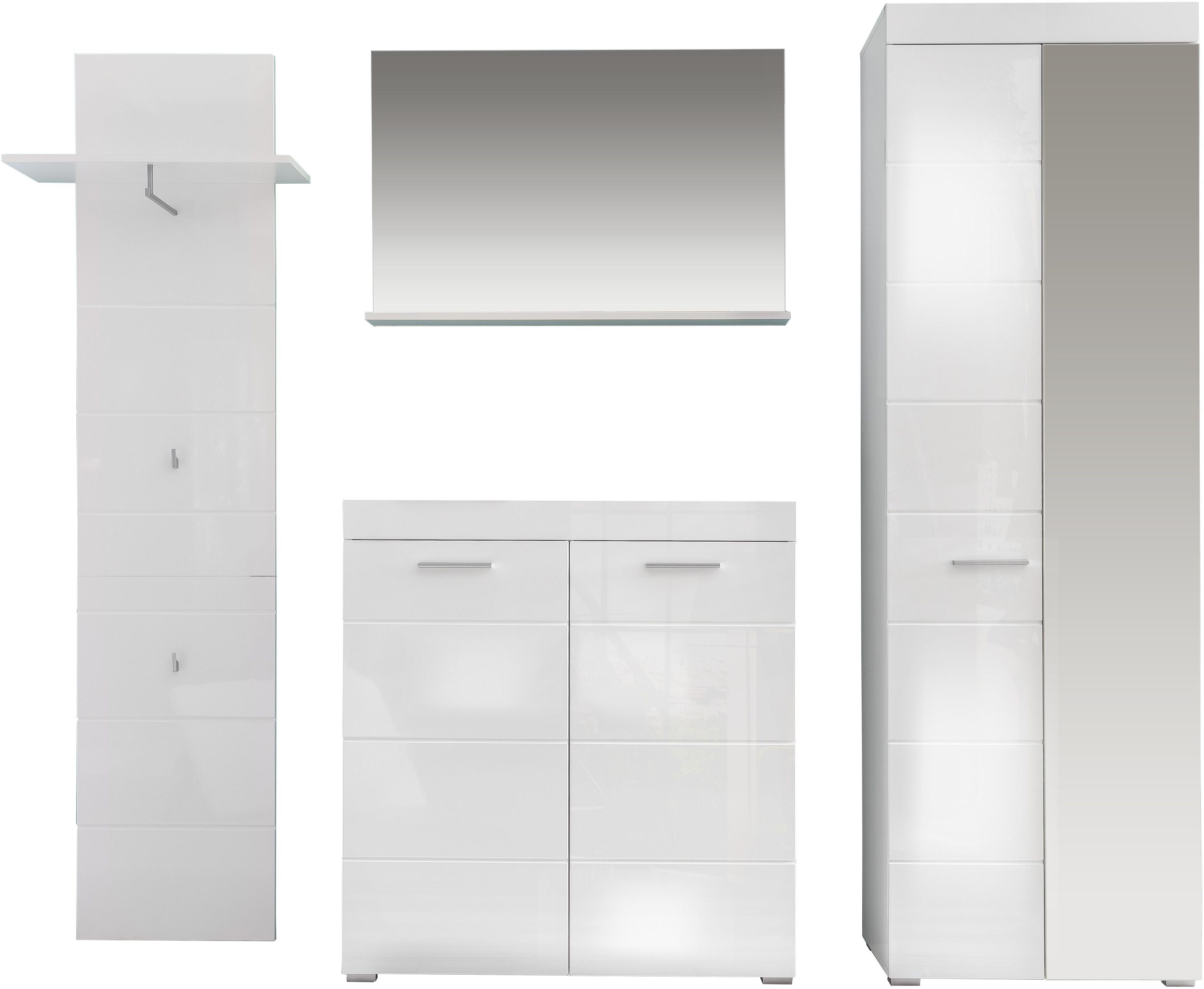 Garderobenset Amanda 4 teilig weiß Hochglanz 233 cm mit Garderobenschrank