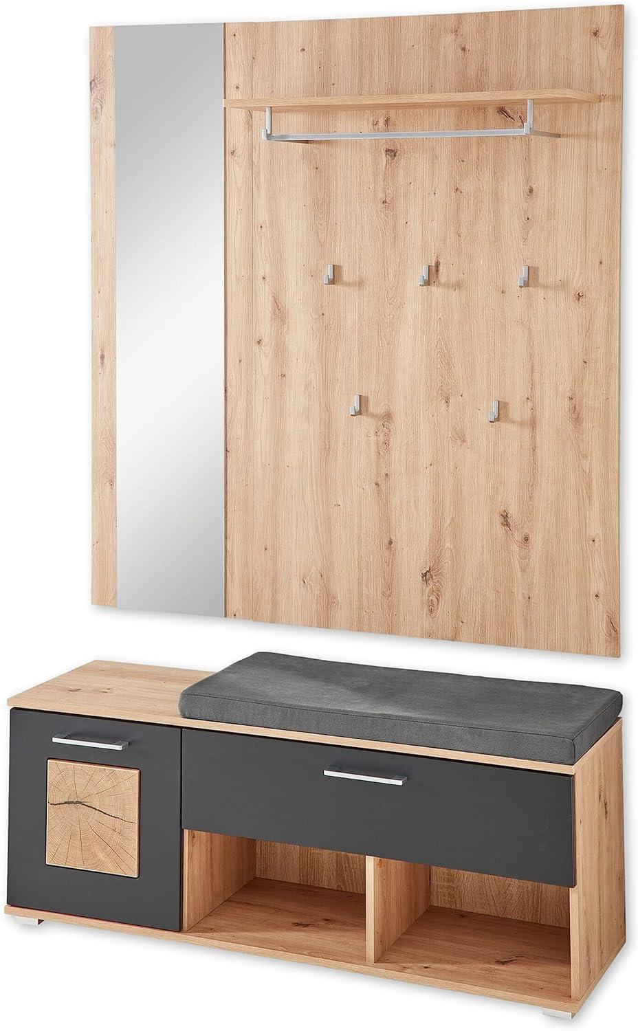 in Garderoben SetsGarderobe Set Paneel Bank und Spiegel FUN Artisan Eiche / schwarz ca. 126 x 193 x 38 cm
