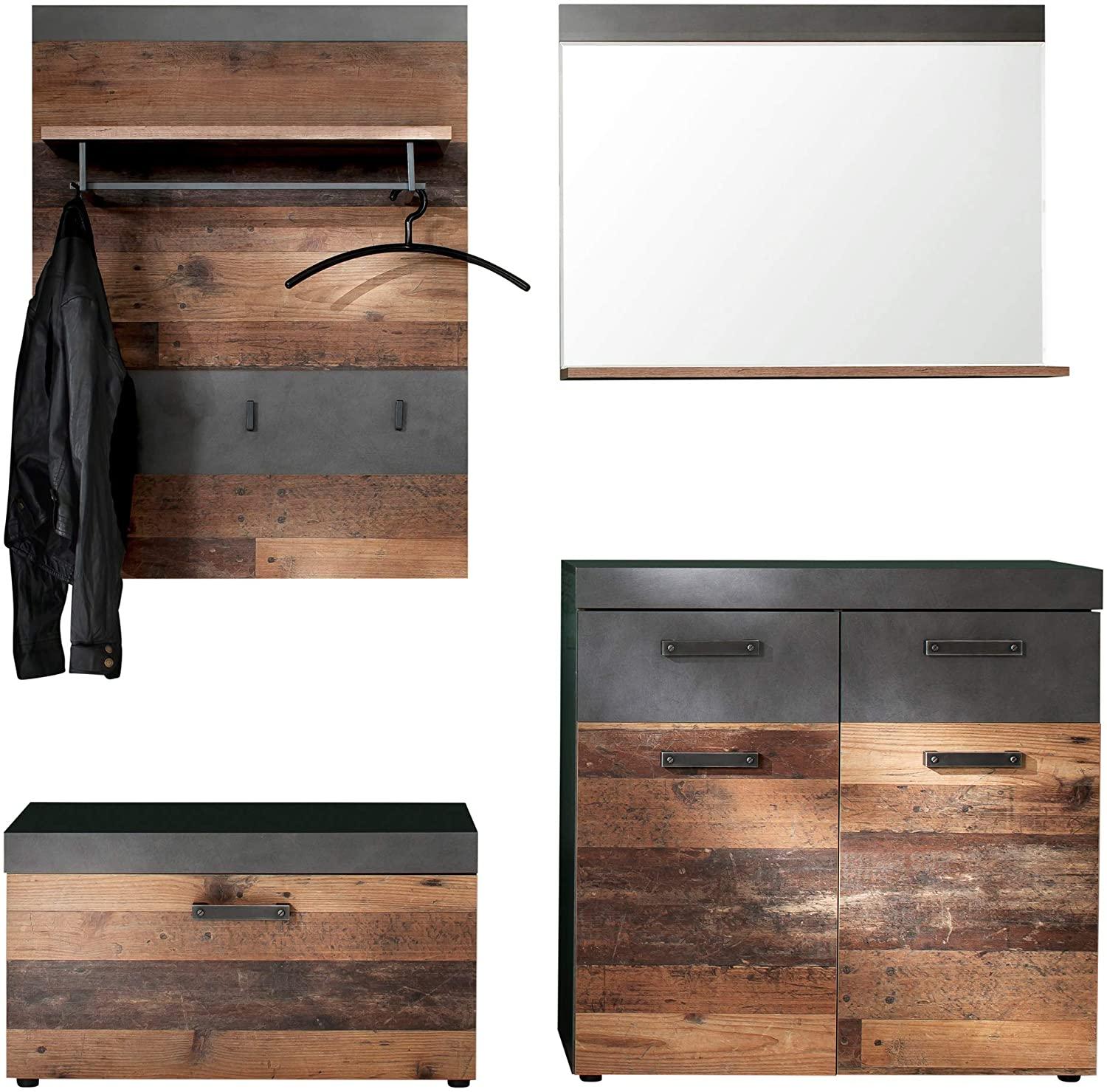 | Name | Garderobenset Indy 4-teilig in Used Wood Shabby und Matera grau 185 cm |