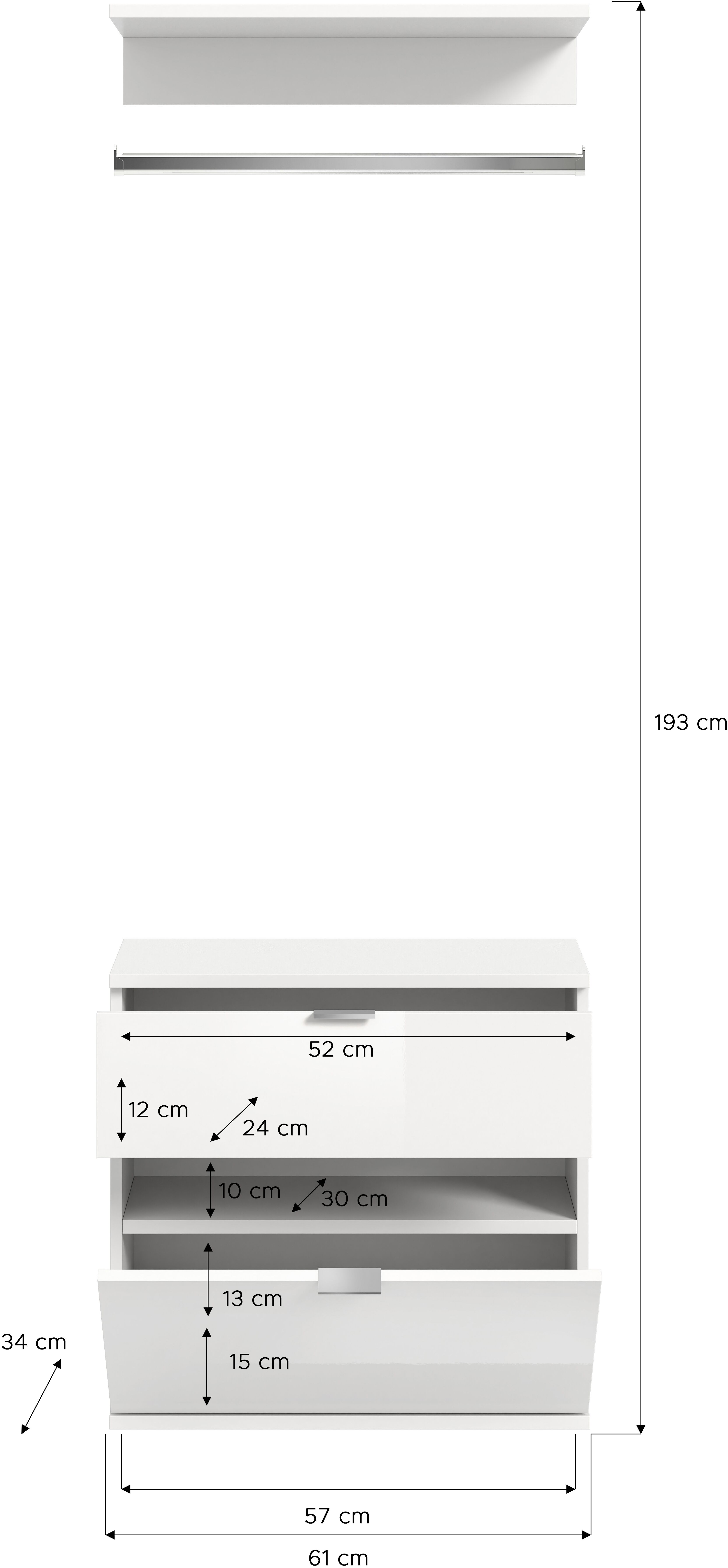 | Lieferumfang | 1x Kommode, 1x Garderobenstange |