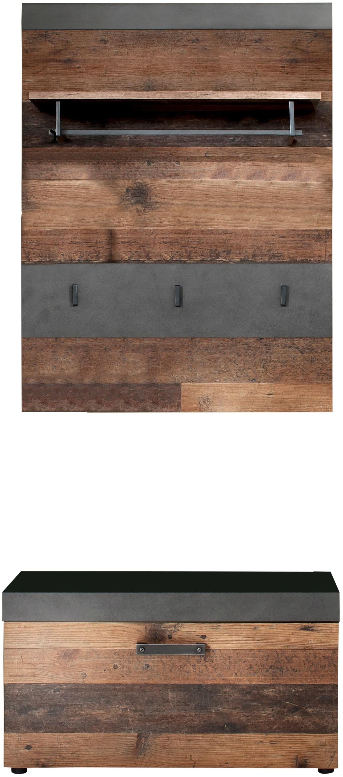 Garderobenset Indy 2-teilig in Used Wood Shabby und Matera grau 80 cm