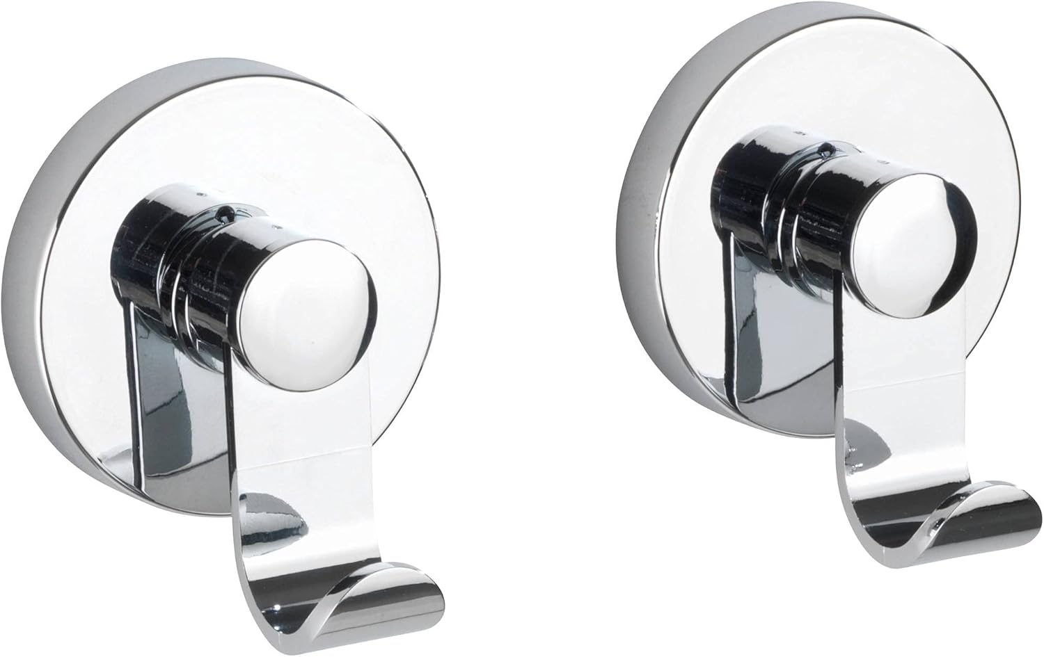 Mit den WENKO Wandhaken Vacuum-Loc® Irun bringen Sie Ordnung in Ihr Zuhause. Diese glänzenden Haken aus verchromtem Kunststoff (ABS) im praktischen 2er Set sind ideal für die Aufbewahrung von Bademänteln, Handtüchern und mehr. Dank des innovativen Vacuum-Loc® Systems erfolgt die Montage ohne Bohren und ist auf allen luftundurchlässigen und leicht unebenen Flächen möglich. **Highlights** - Einfache Montage ohne Bohren - Wiederverwendbar und rückstandslos entfernbar - Hohe Belastbarkeit von bis zu 33 kg pro Haken - Ideal für verschiedene Räume im Haushalt - Europäischer Patentschutz für sicheren Halt **Produkteigenschaften** - Material: verchromter Kunststoff (ABS) - Set: 2 Haken - Anwendung: für luftundurchlässige und leicht unebene Flächen - Montage: mit mitgelieferter Pumpe - Maße (B x H x T): je 6 x 7 x 5 cm **Lieferumfang** - 2 Wandhaken Vacuum-Loc® Irun - Pumpe zur Montage