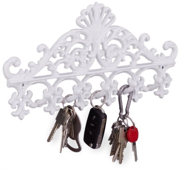 Die Garderobenleiste aus Gusseisen im antiken Landhausstil ist eine stilvolle Ergänzung für Ihren Flur, Ihre Diele oder Ihre Küche. Mit 5 stabilen Haken bietet sie ausreichend Platz für Jacken, Schals, Schlüssel und Handtücher. Das rustikale Design verleiht Ihrem Zuhause einen edlen Touch. Die Leiste ist robust und kann mit bis zu 5 kg belastet werden. Sie lässt sich einfach an der Wand montieren. **Highlights** - Antiker Landhausstil im Barock-Design - 5 Haken für Jacken, Schals, Schlüssel, Handtücher uvm. - Vollständig aus Gusseisen gefertigt und besonders stabil - Passend zum Landhaus-Stil oder Jugendstil - Platzsparend und einfach zu montieren **Produkteigenschaften** - Farbe: Weiß - Material: Gusseisen, lackiert - Abmessungen (H x B x T): ca. 17 x 35 x 3,5 cm - Abstand zwischen den Haken: ca. 4,5 cm - Belastbarkeit: ca. 5 kg - Gewicht: ca. 1 kg **Lieferumfang** - 1 x Garderobenleiste aus Gusseisen mit 5 Haken - Montagematerial zur Wandmontage ist nicht beigelegt - Dekorationsartikel sind im Lieferumfang nicht enthalten