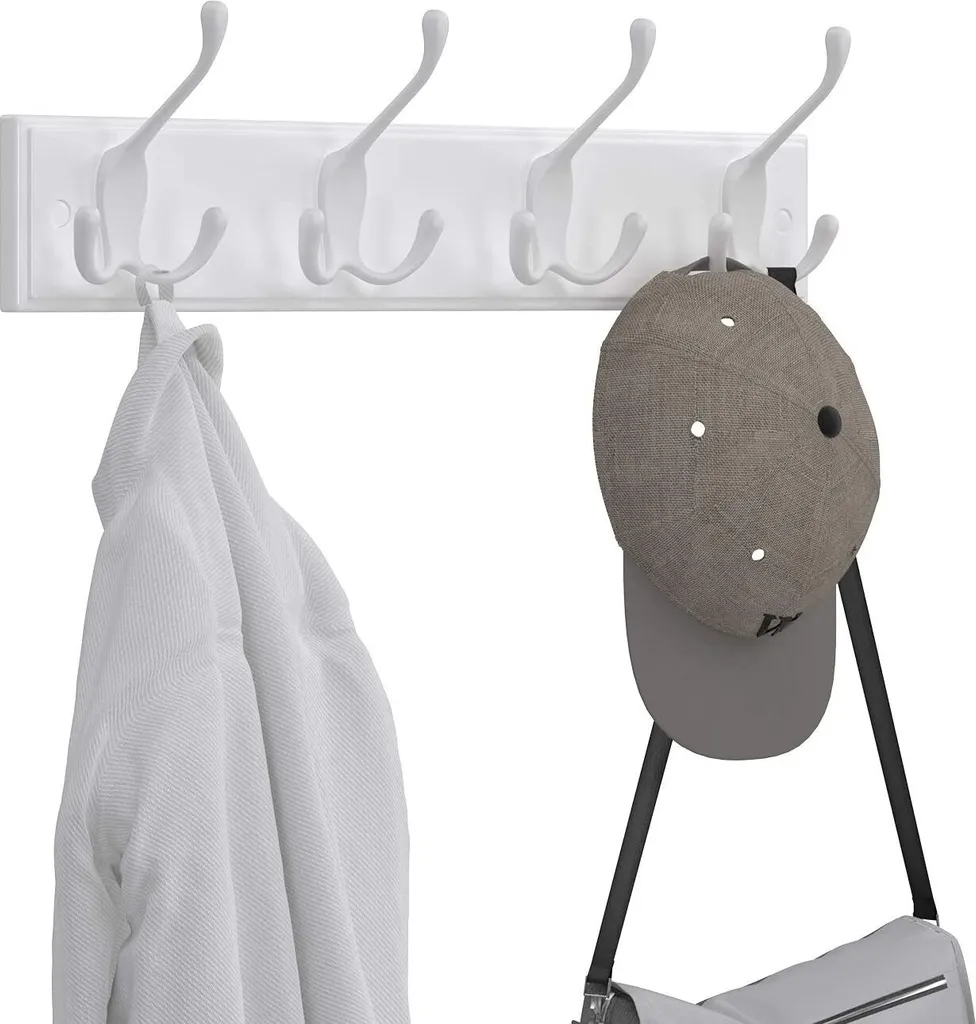 | Name | Songmics Garderobenleiste mit 4 Dreifach-Haken aus Metall, Holz weiß, 7 x 40 x 11 cm |
