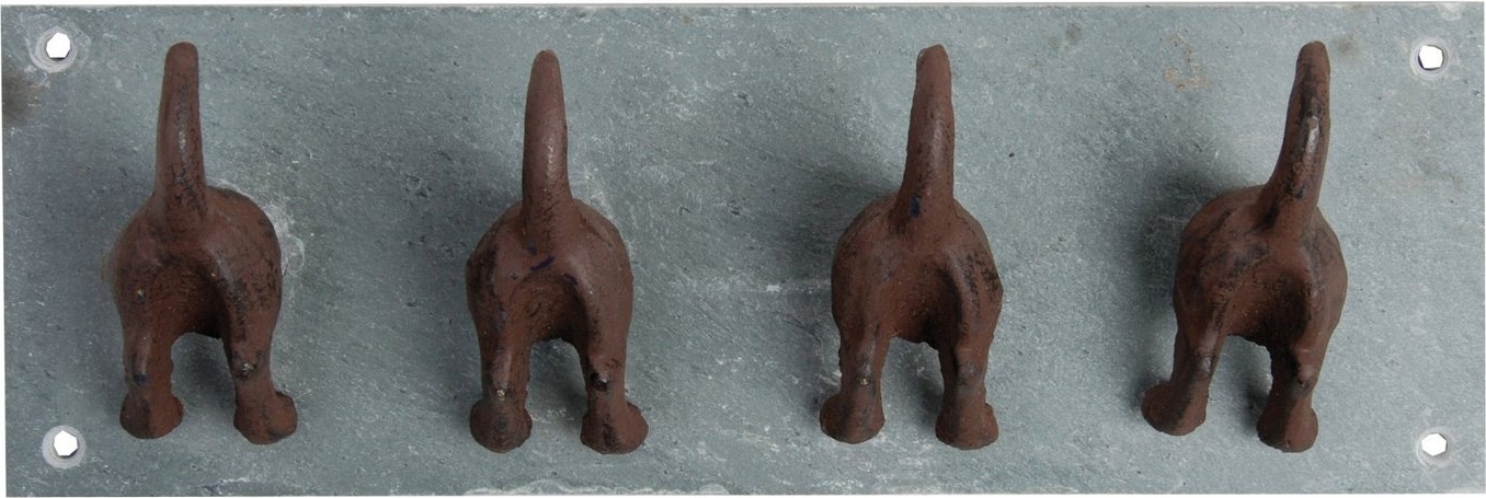Eschert Haken Hundeschwanz 4er. Platte: Schiefer. Haken: Gusseisen. Maße: ca. 30x6. 5x10 cm