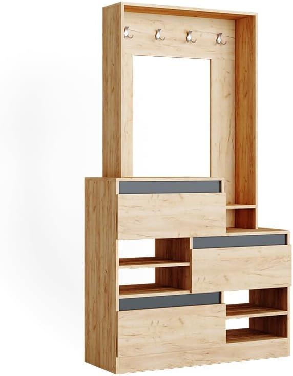 - Die Garderobe Evia Goldkraft Eiche bietet mit ihren 3 klappbaren Schuhregalen ausreichend Platz für Ihre Schuhe.