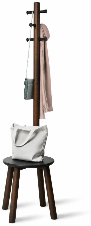 Umbra Garderobenständer Pillar mit HockerStandgarderobe, Sitzhocker, Gummibaumholz, MDF, Schwarz, Walnuss, 50x167 cm, 1014257-048