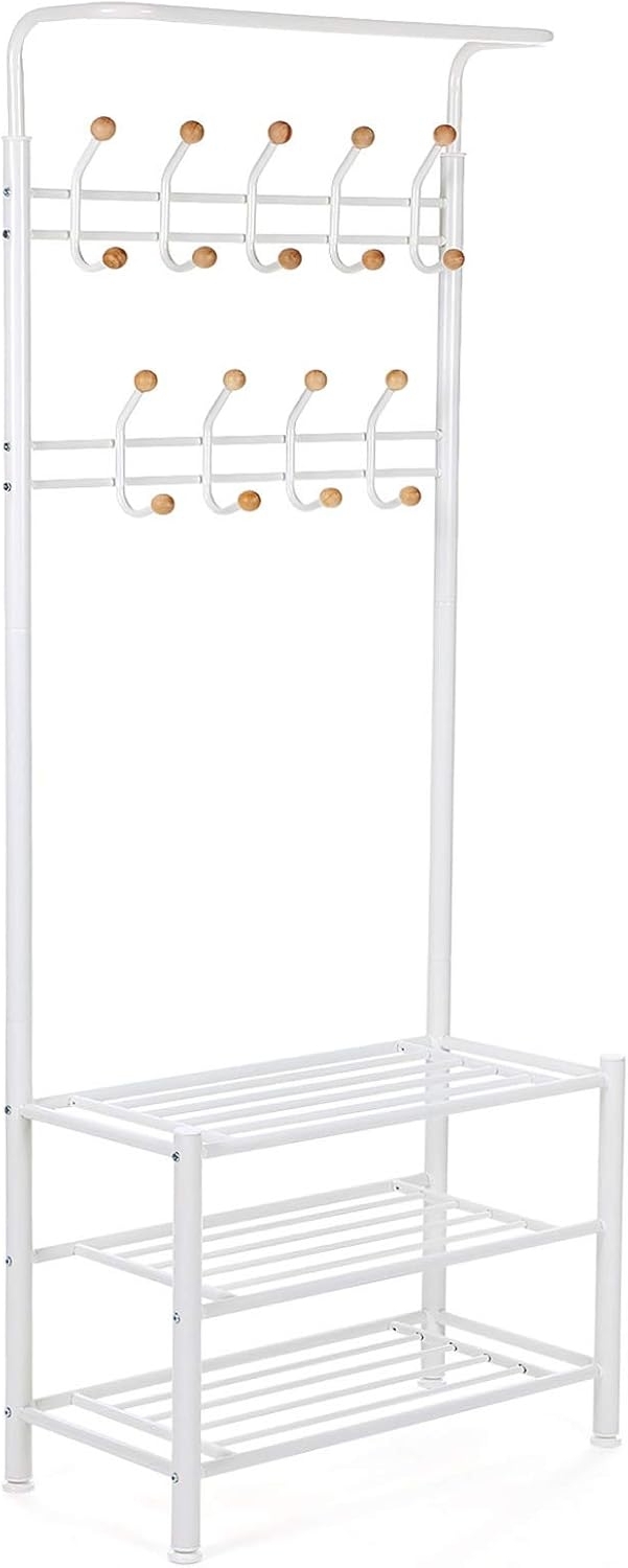 | Name | Songmics Garderobenständer Kleiderständer Rohrdurchmesser 32 mm mit 3 schuhablagen mit 18 Haken aus Metall, weiß, HSR04W |
