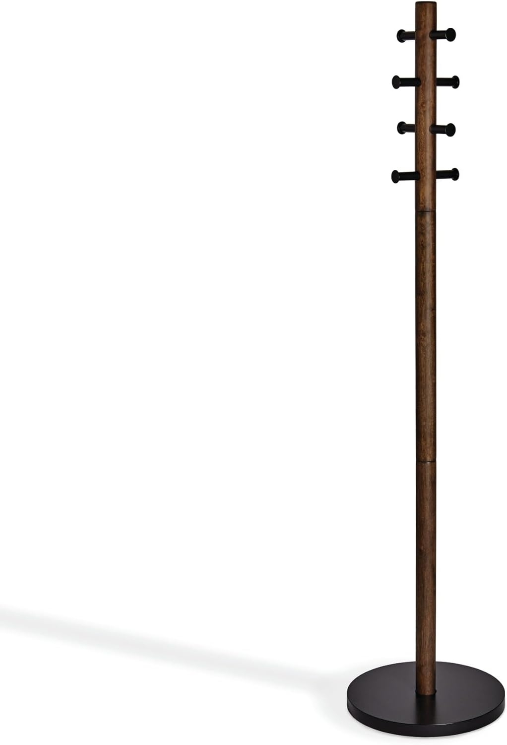 Der PILLAR Garderobenständer aus Holz vereint Eleganz und Funktionalität. Hergestellt aus hochwertigem Gummibaumholz in den Farben Schwarz und Walnuss, bietet er mit seinen acht Haken reichlich Stauraum für Mäntel und Accessoires. Mit einem Durchmesser von 50,8 cm und einer Höhe von 165,1 cm fügt sich dieser stilvolle Garderobenständer harmonisch in verschiedene Räume ein und ist einfach zu montieren. **Highlights** - Hergestellt aus Echtholz und Metall für Langlebigkeit - Acht Haken bieten reichlich Stauraum - Elegantes Design in Schwarz und Walnuss - Vielseitig einsetzbar in verschiedenen Räumen - Einfache Montage **Produkteigenschaften** - Material: Gummibaumholz - Gewicht: 5600 g - Maße: 40 x 40 x 168 cm - Durchmesser: 50,8 cm - Höhe: 165,1 cm