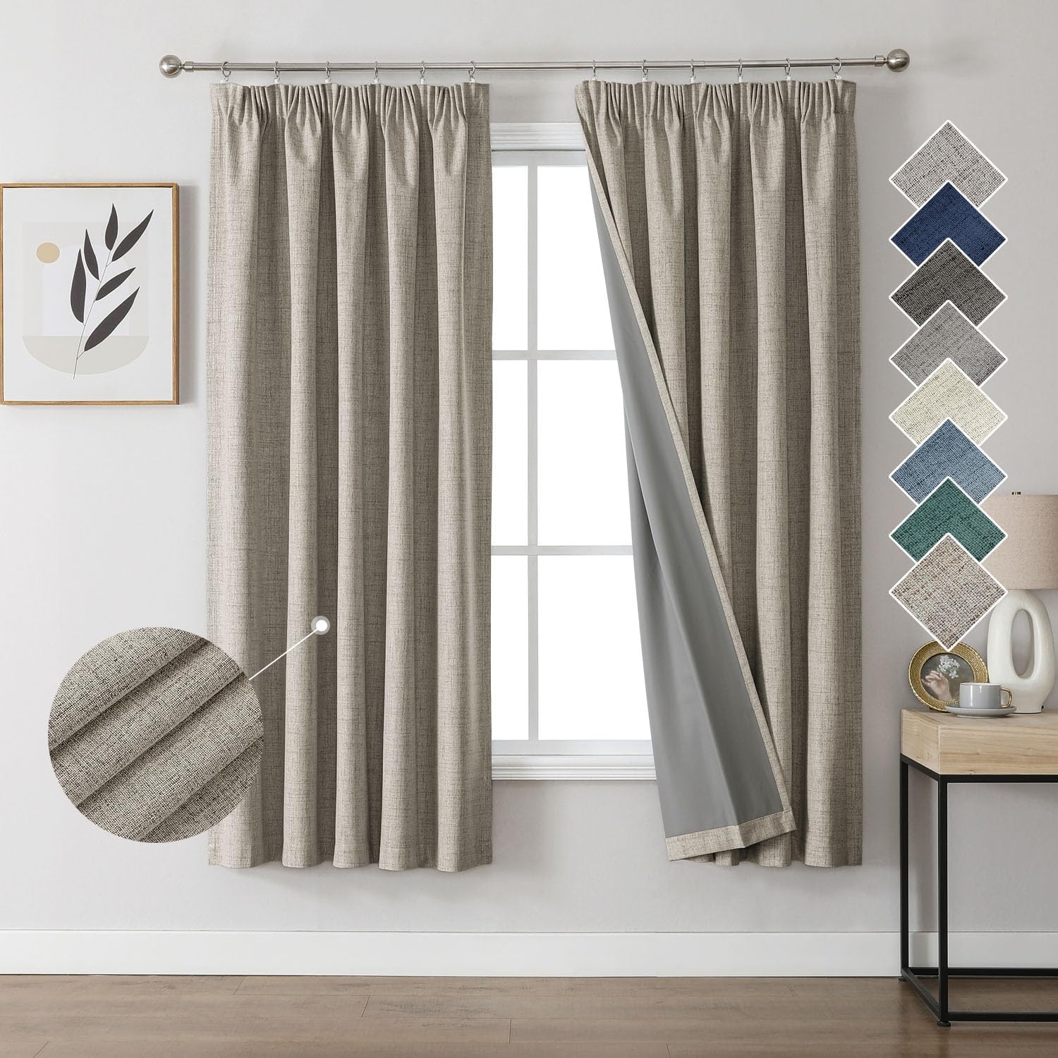 in Gardinen & VorhängeJoydeco 100% Verdunkelungsvorhänge Leinen Gardinen mit Kräuselband Thermovorhang Kälteschutz Blickdicht Schallschutz Ideal für Wohnzimmer passt zu Schienensystemen Leinen H137xB117cm 2er Set