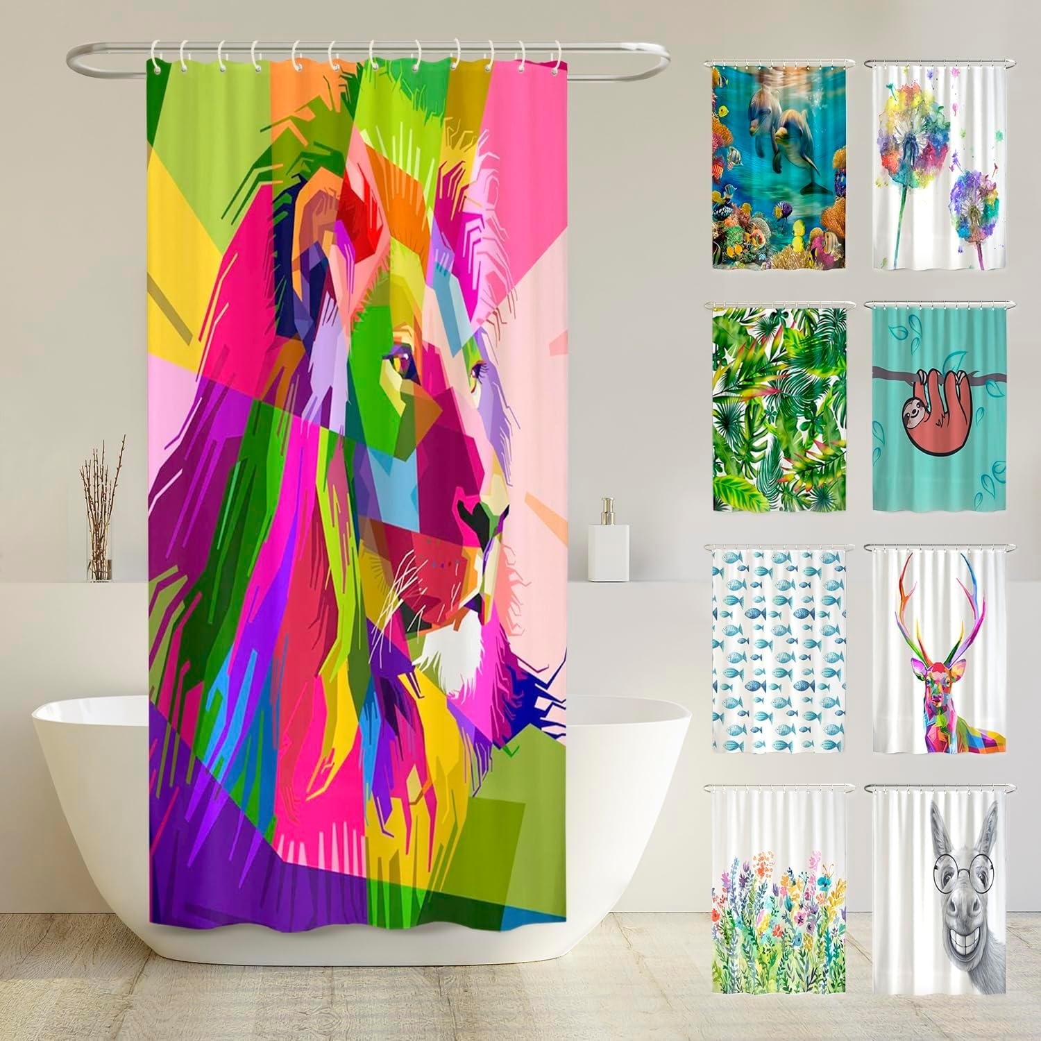 | Name | arteneur® - Löwe - Anti-Schimmel Duschvorhang 120x200 - Recycelt mit Öko-Tex Standard 100 - Beschwerter Saum, Blickdicht, Wasserdicht, Waschbar, 8 Haken & E-Book |