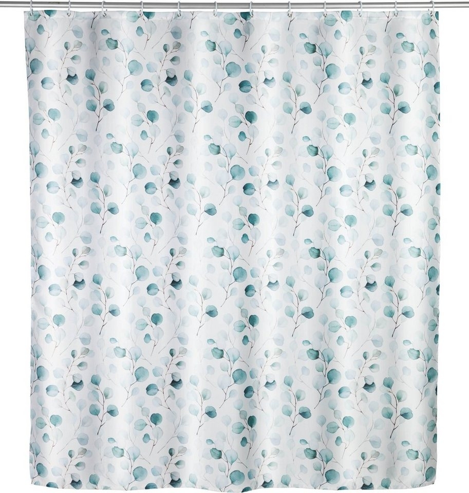 Der WENKO Duschvorhang Pioppo bietet mit einer Breite von 180 cm und einer Höhe von 200 cm optimalen Schutz für Duschtassen und Badewannen. Hergestellt aus 100 % Polyester, ist er wasserabweisend und pflegeleicht bei 30 °C waschbar. Die verstärkte Lochleiste mit rostfreien Metall-Ösen sorgt für eine einfache Montage. Das umweltfreundliche Gummigewichtsband am unteren Ende verleiht dem Vorhang Stabilität. Das ansprechende Design mit geschwungenen Zweigen in Blau-Grün-Tönen bringt eine natürliche Note in Ihr Badezimmer. **Highlights** - Wasserabweisend: Hält das Bad trocken und schützt vor Wasserspritzern. - Pflegeleicht: Waschbar bei 30 °C für einfache Reinigung. - Hochwertiges Material: Aus 100 % Polyester für Langlebigkeit. - Einfache Montage: Verstärkte Lochleiste mit rostfreien Metall-Ösen. - Umweltfreundlich: Gewichtsband aus Gummi statt Blei. **Produkteigenschaften** - Maße (BxH): 180x200 cm - Material: 100 % Polyester - Pflege: Waschbar bei 30 °C - Gewichtsband: Aus umweltfreundlichem Gummi - Design: Geschwungene Zweige mit Blättern in Blau-Grün-Tönen **Lieferumfang** - 1 Duschvorhang Pioppo - 12 weiße Duschvorhangringe aus Kunststoff