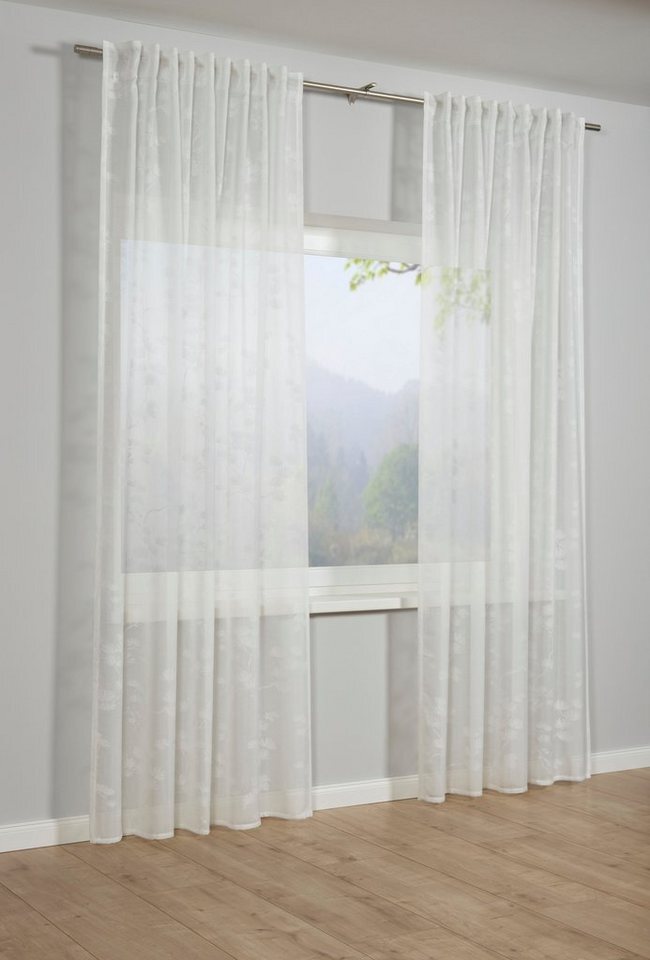 in Gardinen & VorhängeGARDINIA Gardine Schal mit Gardinenband Ausbrenner Baumwollblüteverdeckte Schlaufen (1 St), transparent, Stoff Ausbrenner mit Baumwollblüte Motiv