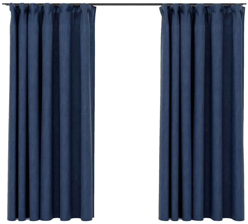 vidaXL Verdunkelungsvorhänge Haken Leinenoptik 2 Stk. Blau 140x175 cm 321180
